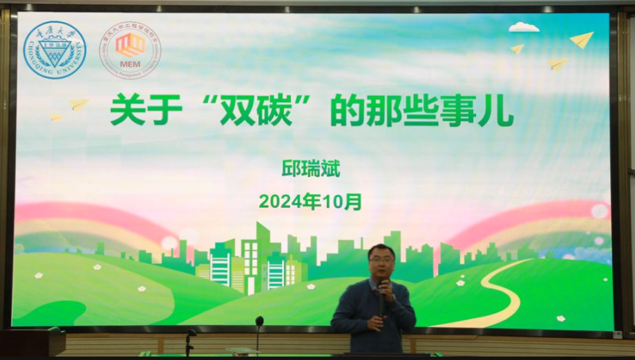 重庆大学管理科学与房地产学院2023级MEM邱瑞斌从国家制定的双碳目标战略大背景引入,结合自身多年的双碳与ESG工作经验,深入介绍了能源、工业、交通、建筑、农业等各领域发展双碳产业的具体措施、意义及经济效益,并就如何助力国家实现碳中和目标提出了个人措施与企业方案。