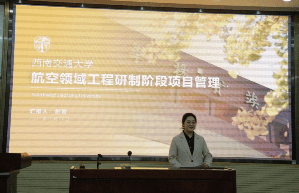西南交通大学2023级MEM彭蕾在沙龙上分享了《航空领域工程研制阶段项目管理》的主题报告。她深入探讨了项目管理面临的多维度挑战,如跨学科沟通、技术风险评估、资源分配及在动态环境中维持项目进度等的重要性。彭蕾同学通过对这些宝贵经验见解的讲述,让参与讲座的同学们对项目管理的复杂性和艺术性有了更全面的认识。