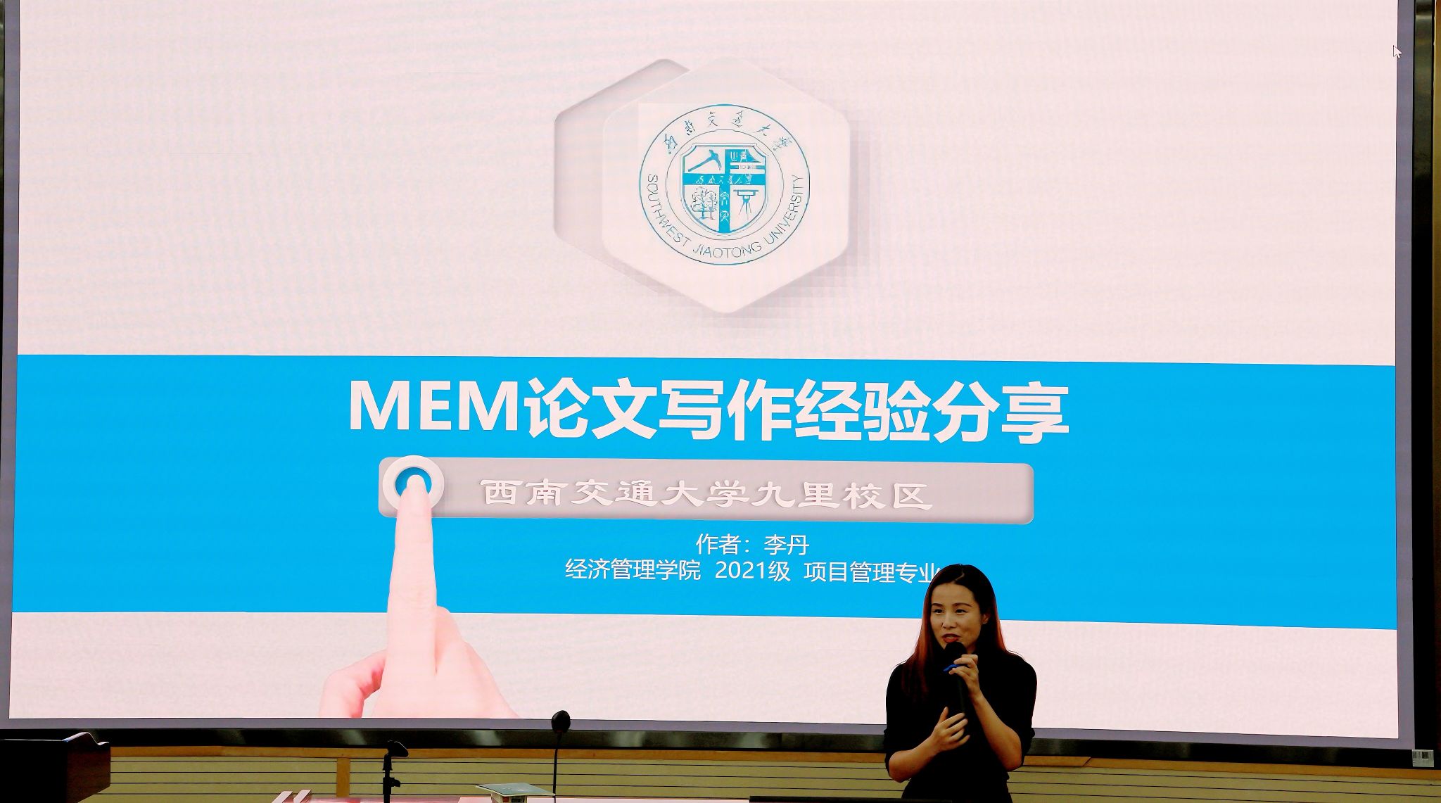 2021级MEM李丹,分享了论文写作经验,以及与如何与导师进行沟通等。她谈到,在学习过程中要秉持一个好的心态,勇毅自律前行;在答辩过程中,要虚心接受和记录答辩老师的批评指正、按要求修改调整。