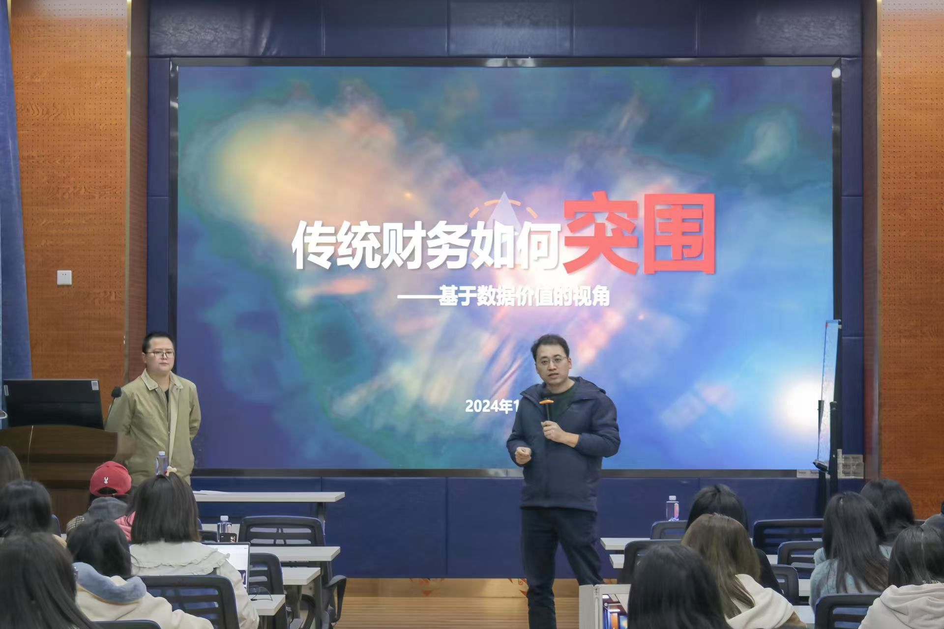 带来主题为“传统财务如何突围——基于数据价值的视角”的讲座。此次活动吸引了学院会计专业共计50余名研究生参与,共同探讨传统财务的现状与未来发展趋势。讲座由学院专业学位教育中心副主任诸波主持。