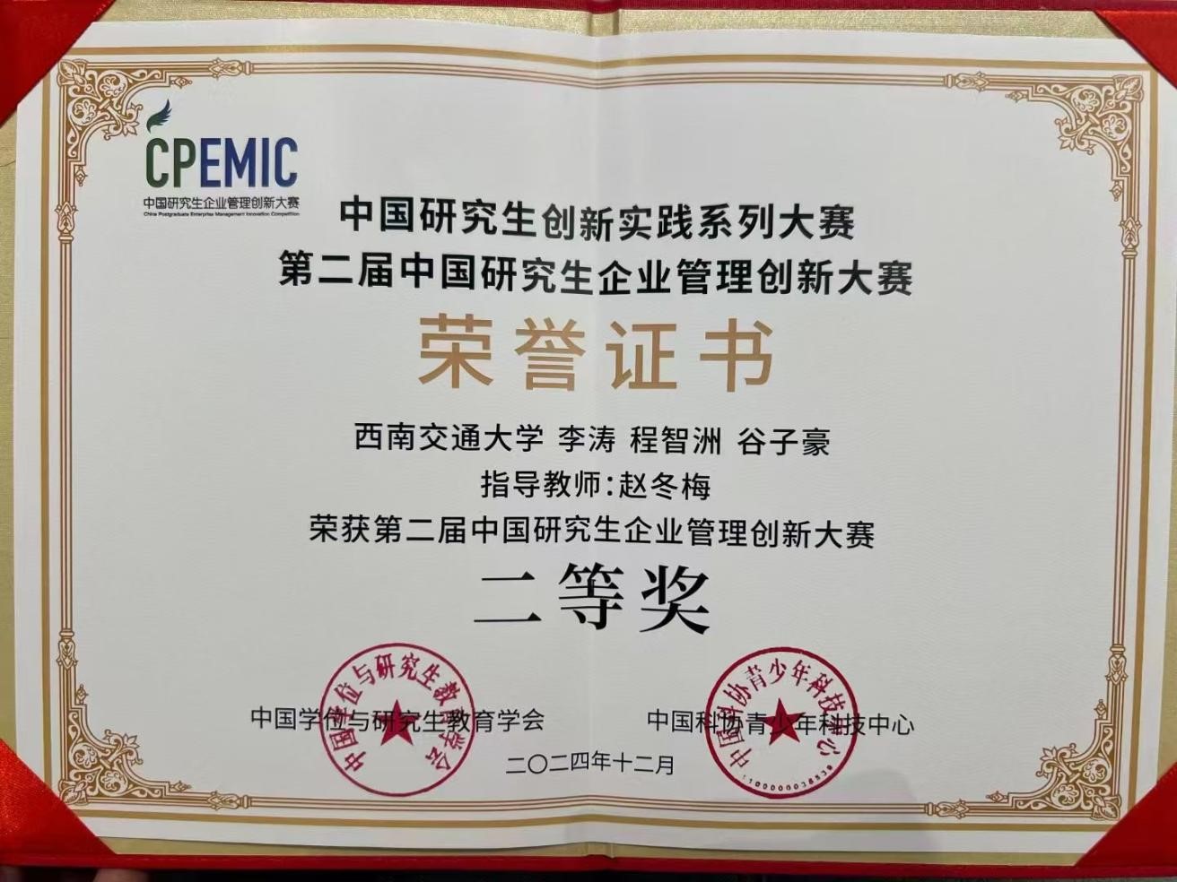 2024年11月30日-12月1日,第二届中国研究生企业管理创新大赛全国总决赛在成都科幻馆隆重举行。大赛由教育部学位管理与研究生教育司指导,全国工商管理专业学位研究生教育指导委员会学术指导,中国学位与研究生教育学会、中国科协青少年科技中心主办,全国工商管理专业学位研究生教育指导委员会秘书处、中国学位与研究生教育学会工商管理专业学位工作委员会、中国管理现代化研究会决策模拟专业委员会承办。