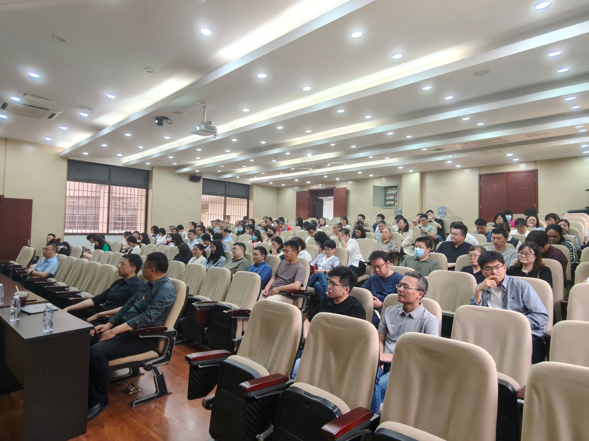 于九里校区0215室召开全院教职工大会,会议围绕“深入贯彻中央八项规定精神学习教育警示教育”和“学院绩效办法调整”两项议题展开。会议由学院党委书记郭强主持,学院领导班子及全体教职工参加会议。