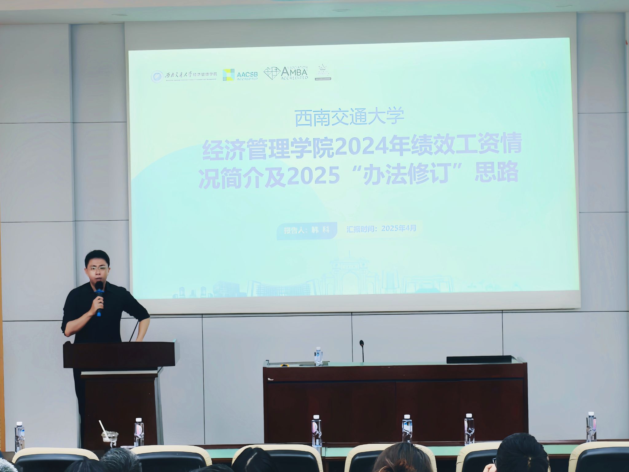 2024年绩效工资情况及2025年修订思路进行详细说明。韩科对绩效办法修订的原则、具体措施及反馈机制作全面解读,全方位听取教职工的意见和建议。韩科指出,绩效办法修订关系教职工切身利益和学院长远发展,希望全体教职工统一思想、凝聚共识,共同推进学院治理体系不断完善。