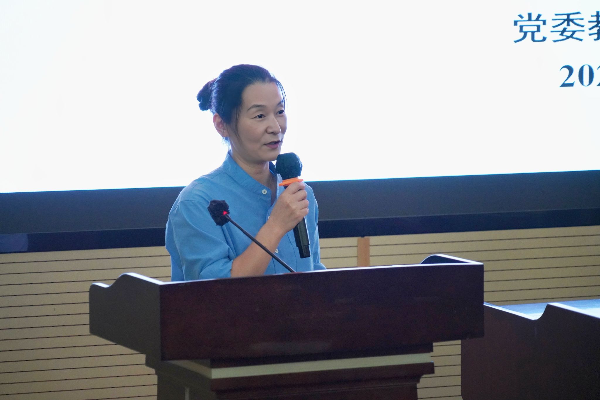 学院党委书记蒋佳发言。蒋佳回顾了自身在教育教学与党建工作中的实践经历,对学院全体教职工的信任与支持表示感谢。蒋佳指出,包子漫画