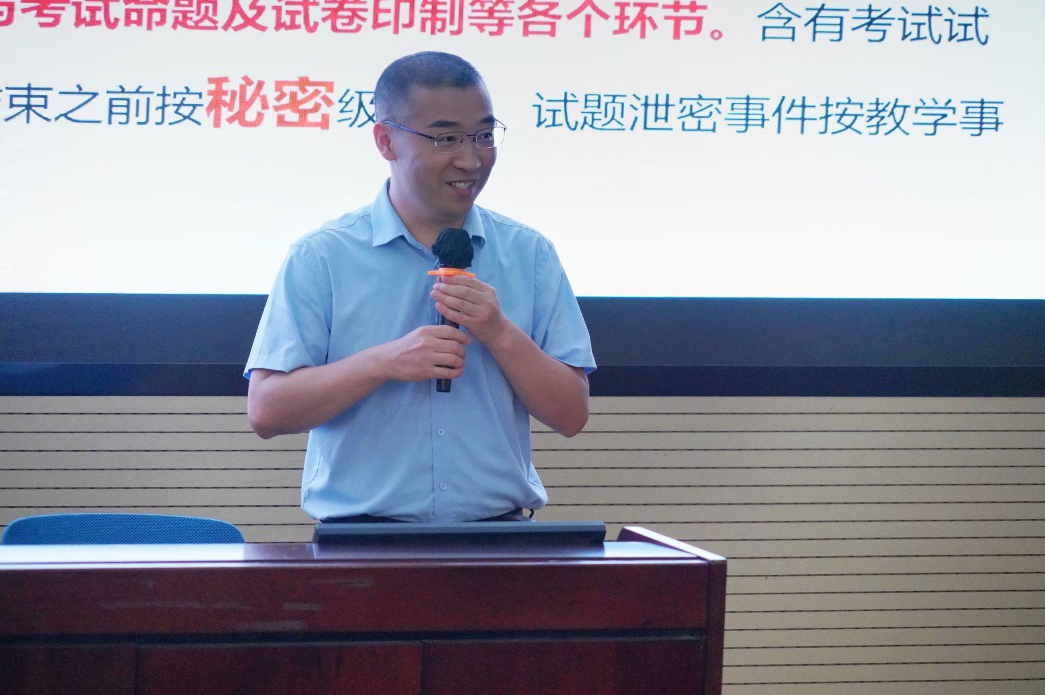 学院副院长聂佳佳对本学期教学管理工作做通报,并针对即将开展的期末考试,详细说明考试命题、监考流程及考务注意事项,要求各系部严格落实考风考纪管理,确保考试公平公正。