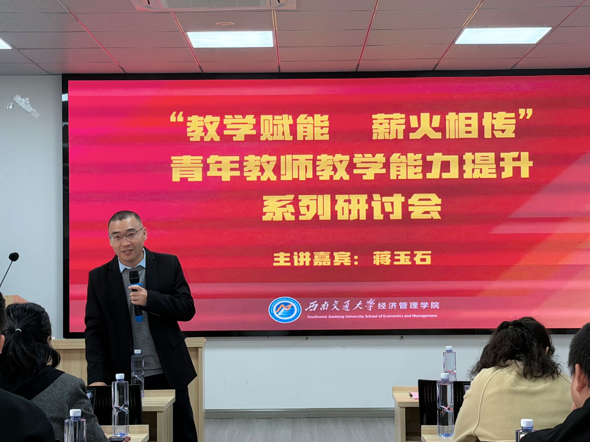 正式启动“教学赋能,薪火相传”系列教学研讨活动。10月27日上午,首场研讨会在九里校区零号教学楼J0819成功举办,特邀蒋玉石教授担任主讲,聚焦“‘翻转’与‘对话’——以学生为中心的高效课堂互动模式设计”,为在场青年教师带来一场理念前沿、内容扎实的教学智慧分享。