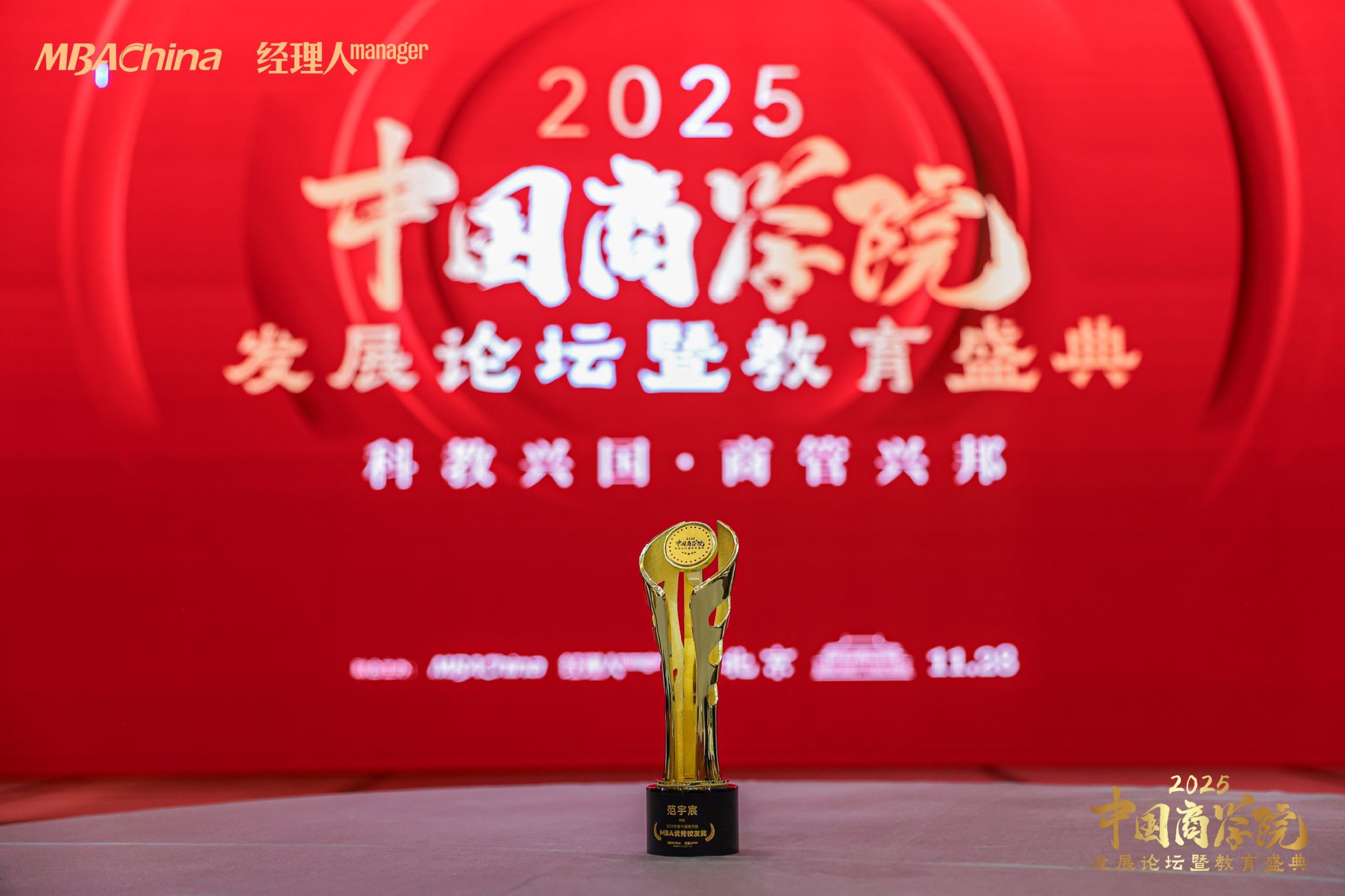 校友范宇宸、朱琳、曾麟洁荣获“2025年度中国商学院MBA项目优秀校友奖”