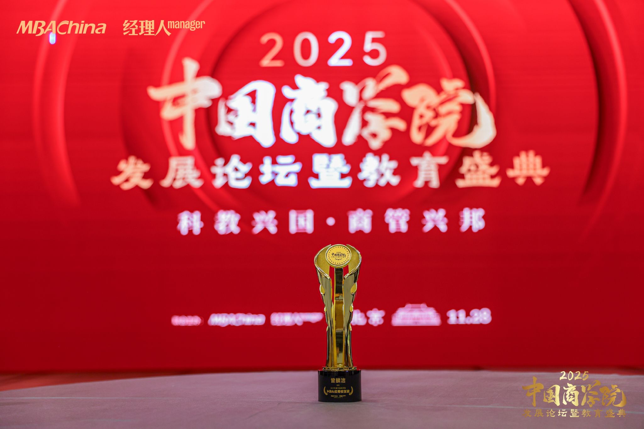 荣获“2025年度中国商学院MBA联合会金徽领航奖”