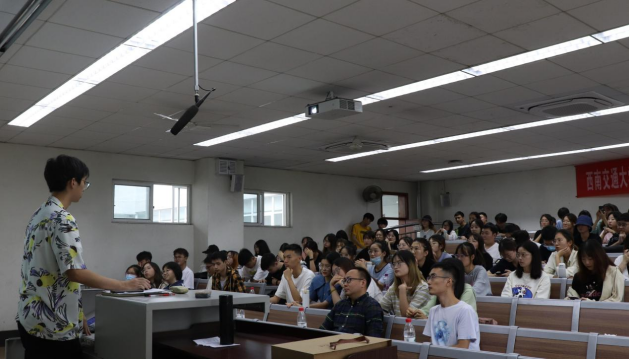 炼一等品行,经世致用。苏老师为我们展示了往届毕业生升学和签约单位情况,希望能给大家带来一定参考,激励大家飞得更高、走得更远。在大二学年,19级的同学们不仅在学业上有所收获,更亲身投入社会实践,用双手创造,用心感受。本次大会由19级的六位同学进行了暑期实习实践分享,他们有的进入一流地产公司,对行业现状有了一定的了解,明确了自己未来的道路;有的走进金融投行领域,在一个月的学习体会下,自己完成了公司交予的任务,成长颇多;有的走上街头,随访市民,近距离探究成渝双城经济圈未来发展;有的走向乡村,深刻领悟扶贫工作的意义。其中,黄纪凯、凌川奇两位同学给大家分享了自己的实习经验,谈到一些面试相关的小技巧时同学们也认真地做着记录。