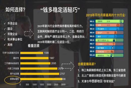 第二位分享的是熊璐洁学姐。熊璐洁学姐曾在多家知名地产企业实习,并且目前任职于世茂地产西部集团公司。熊璐洁学姐进行了主题为“成为自己的后浪”的交流。学姐从亲身经历出发,通过读研三年的所思所感,从学习,校园活动,实习工作三个方面进行了分析。并且创意性地提出了“长板效应强于短板效应”的观点,独到而精炼。接着,学姐从大环境下着眼,以此来解决在未来面临就业时该如何选择的问题。随后学姐通过在职场中“摸,爬,滚,打”的经验告诫我们“犯错并不可怕”“戒掉玻璃心”“尽量实习”“保持稳定能力”的道理,引发了同学们的思考。之后的面试干货分享,从简历准备,笔试准备,集体面试三个方面,详细具体地进行了解读,可谓面面俱到,干货满满。最后,熊璐洁学姐希望我们这些经管的后浪们可以“把握机会,勇于尝试”,“认清现实,认清自己”。以实现奔涌后浪,未来可期。