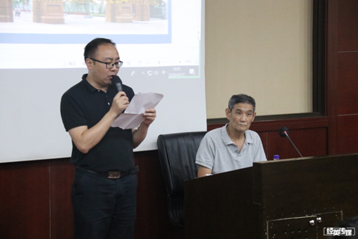 的发展史。紧接着,梁老师通过图片介绍了唐山路矿学堂的校门来历和校园概况。他讲到,清华大学和唐山铁路学堂的校门均由我校校友庄俊设计。接下来,梁老师讲到“竢实扬华”的由来,并解释了竢实扬华的意思,这一系列的介绍增强了新同学们对学校的认同感、自豪感和归属感。