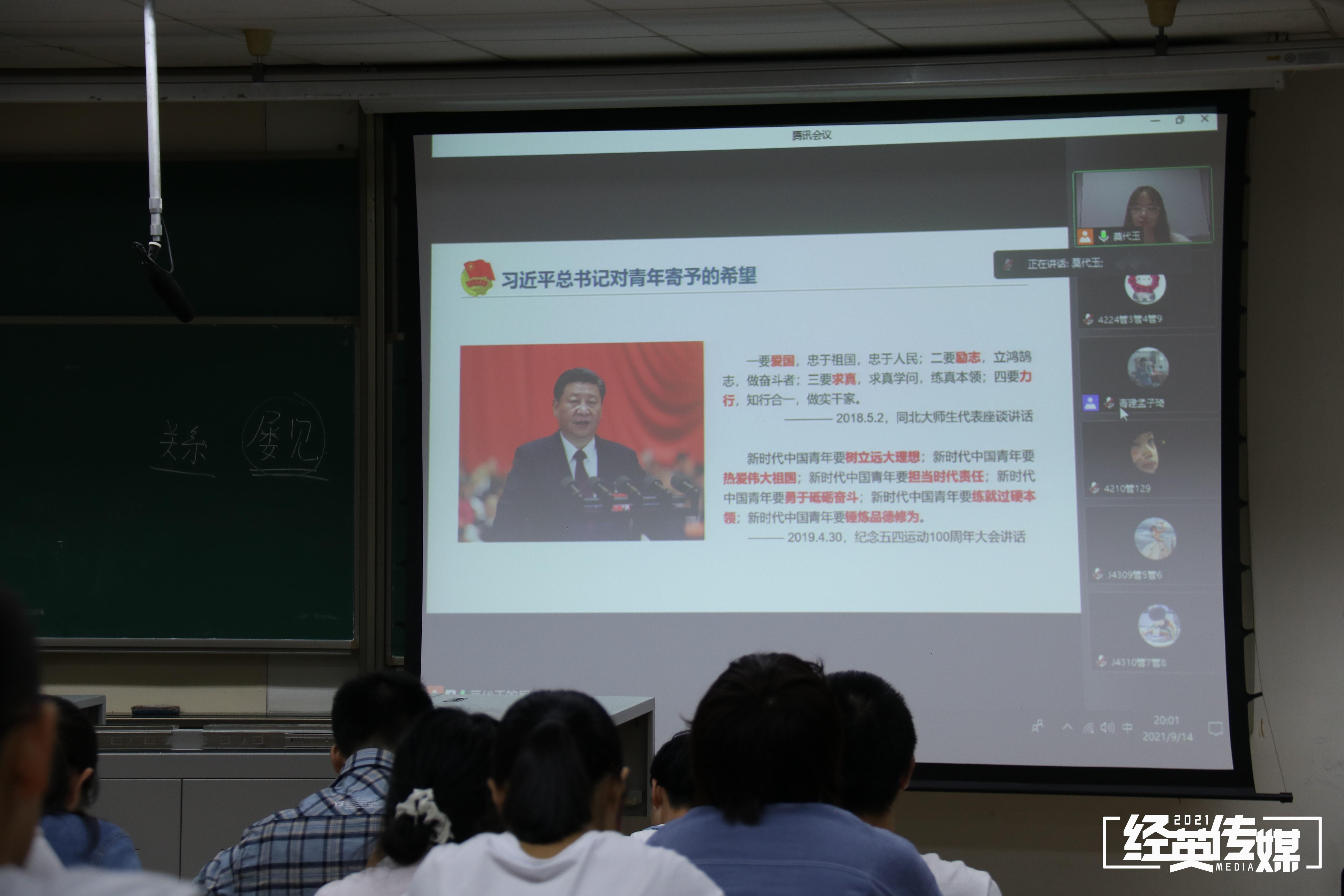 九里校区准时举办了2021级新生第一堂团课。此次团课由本科2021级辅导员莫代玉担任主讲人,大会内容共分为五部分。