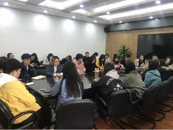 团委书记贾佳主持,学院研究生辅导员杨强和李曦以及2018级研究生各班班委参加此次会议。