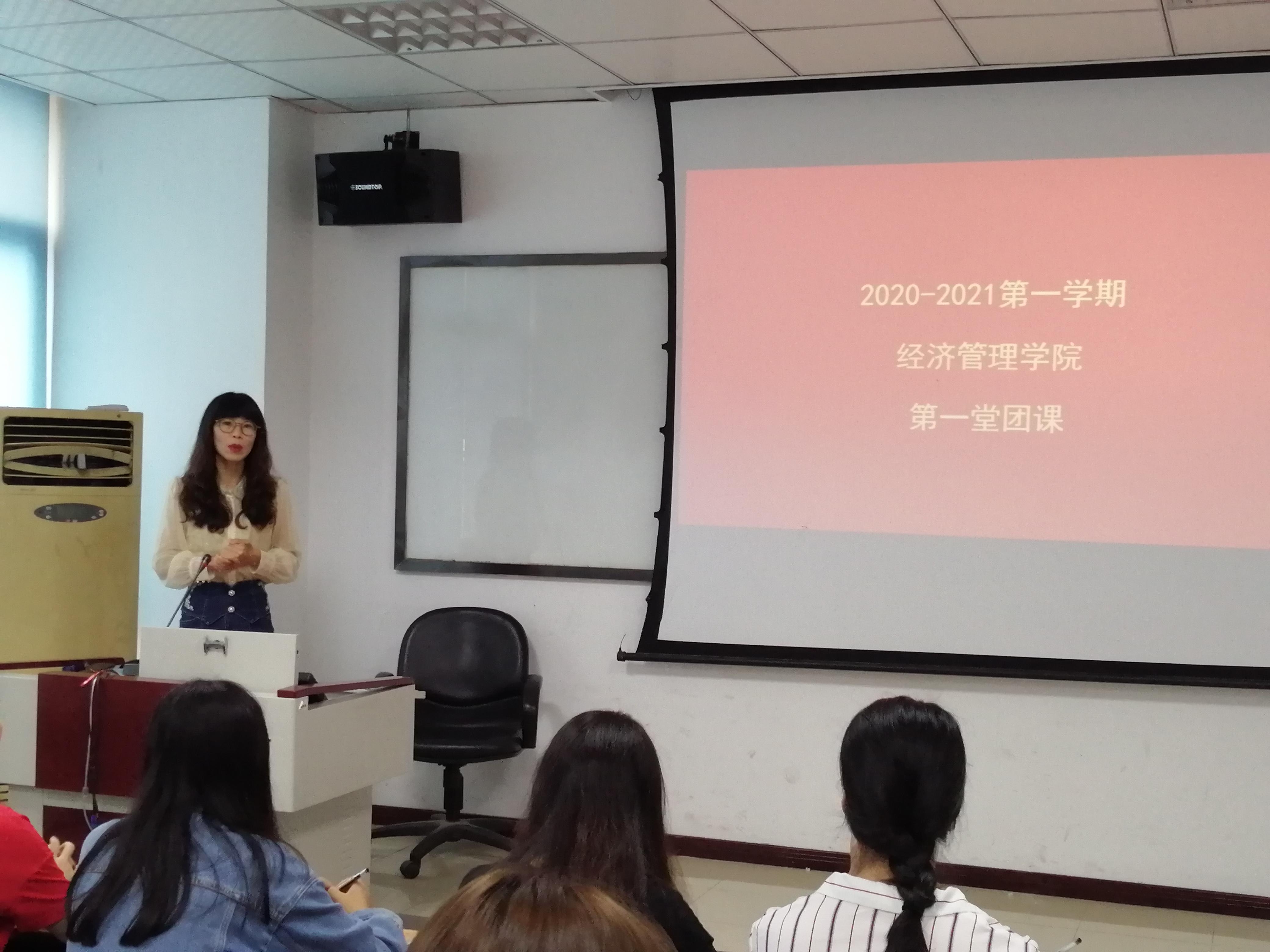 团委书记贾佳老师为20级新生班委召开了第一堂团课。