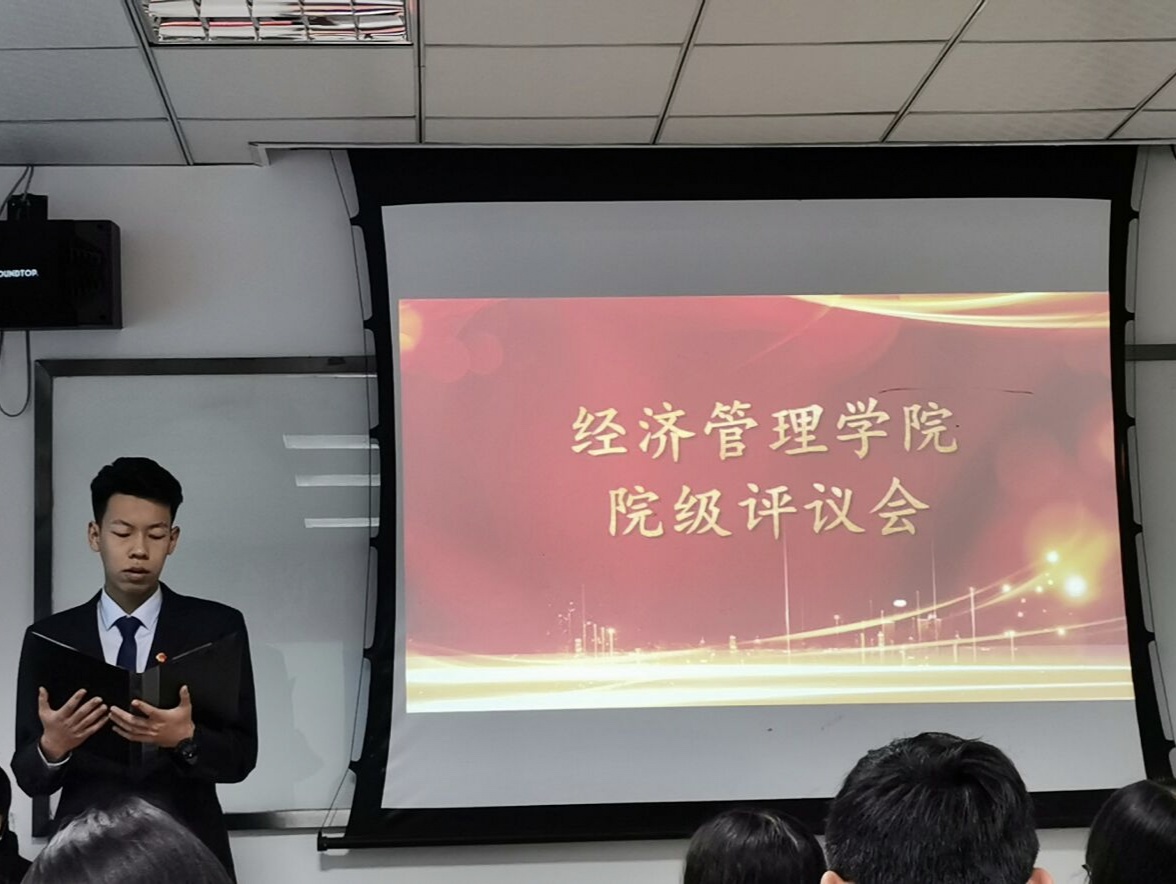 接着,经管学院学生会主席团邓紫莹同学以及各部门负责人依次进行了述职报告。通过他们的述职报告,我们了解到学生会了整体的状况以及各部门举办的活动和成果。各部门各司其职的同时,又能相互沟通,相互配合,这让我们体会到了学生会的团结向上。对于学生会内部来说,也加强了内部凝聚力。