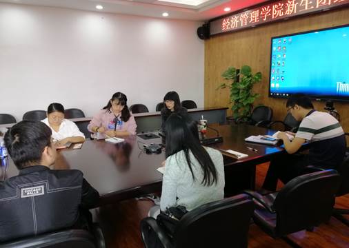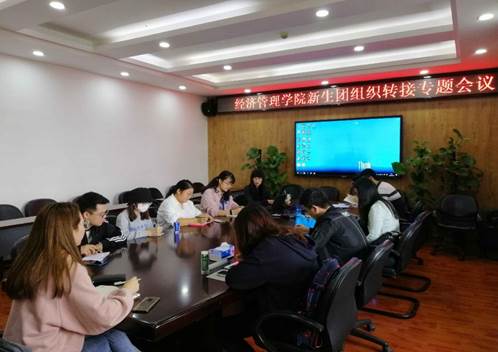 团委书记贾佳老师主持召开,参会者还有研究生辅导员胡广翰老师、团委副书记林泽勇和2020级新生团支书,会议就相关问题进行了专业讲解。