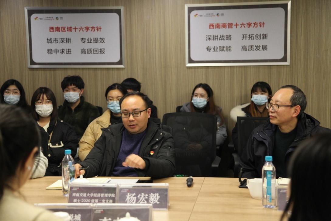 经理管理学院硕士2020级第二党支部在党委副书记杨宏毅、副院长李良以及支部书记贾佳老师和研究生辅导员陈海波老师的带领下,至成都大悦城公司开展“校企联合抓党建,党建引领促发展”主题活动。