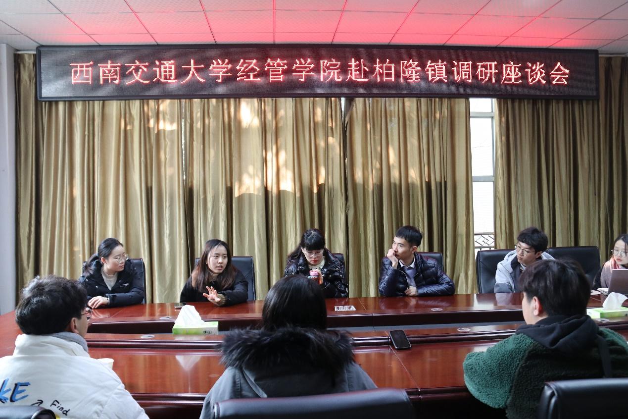 座谈会环节,团队成员从柏隆镇中心镇打造与镇的区位优势入手,循序渐进询问目前柏隆镇对于吸引人才输入的相关政策部署与未来柏隆镇政府计划采用怎样的措施来推进新型城镇化和乡村振兴,促进城乡融合发展。