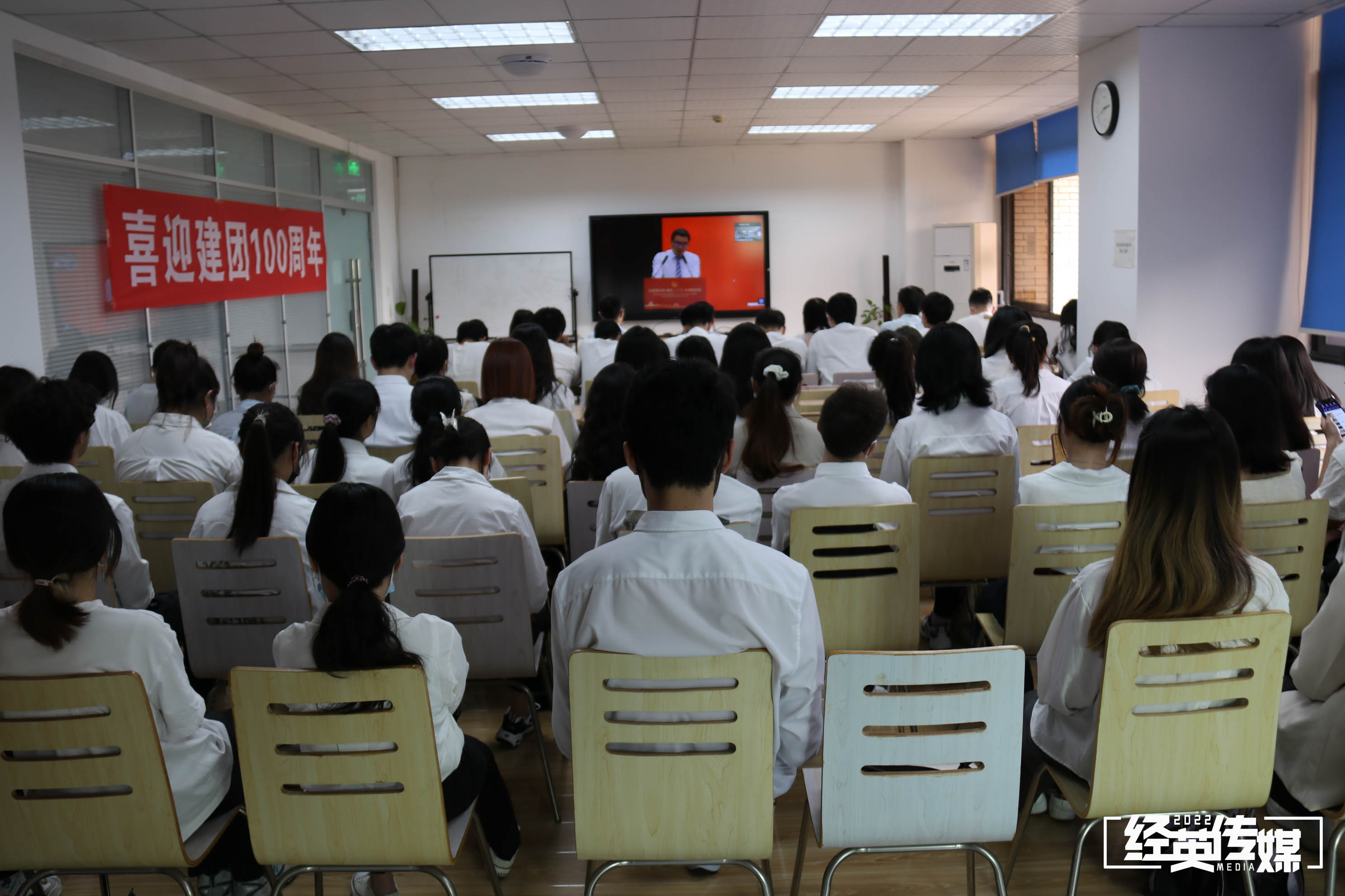 观看完主会场的表彰大会后,多个组织和支部在九里校区以“喜迎党代会、献礼二十大、奋进新征程”为主题的关于中国共青团发展的展板前重温了入团誓词仪式并进行了相应的学习。