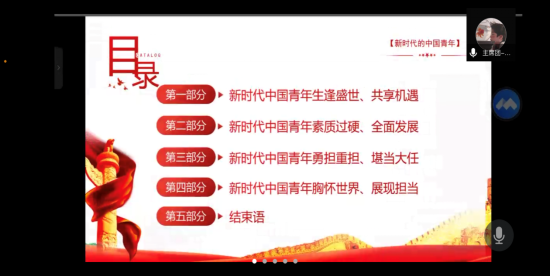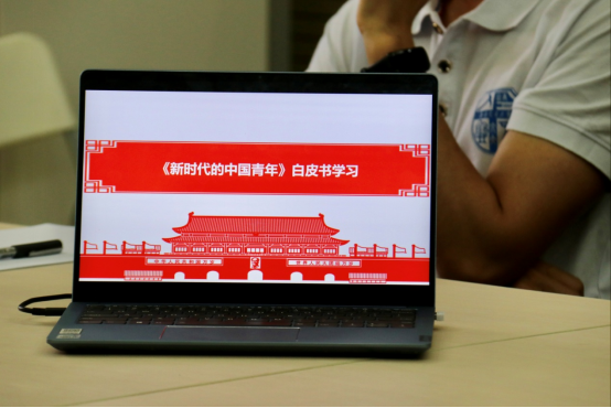 5月8日晚,青年建设中心主席任焕鑫组织骨干成员线上学习《新时代的中国青年》白皮书。会议中,任焕鑫介绍了白皮书发布的重大意义及框架构成,带领同学们学习原文,强调白皮书中的内容和精神值得每一位青年团员学习。他表示白皮书全面介绍了在新时代里,中国共产党和政府为青年发展创造的良好条件,充分展现了新时代中国青年的发展历程和青春担当,广大青年团员要逐字逐句深入学习。