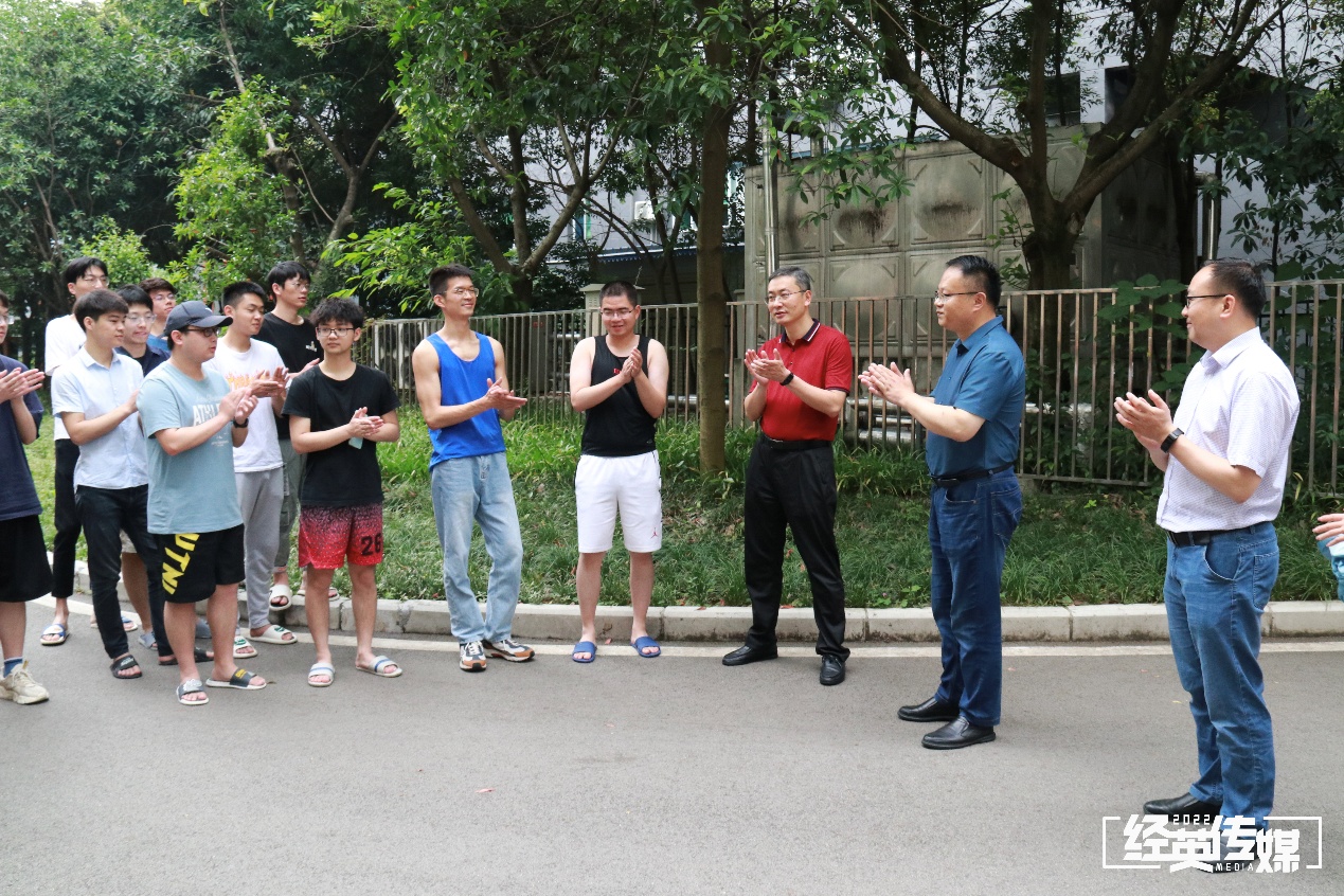 接下来大家来到了本科毕业生宿舍楼下,毕业生同学们对学院一行的到来表示热烈的欢迎。大家围在一团,书记、院长和同学们进行了亲切的交流。交流过后,郭强对同学们提出了三点期望和要求:首先祝贺大家顺利完成了大学四年的学习,希望大家走到新的岗位后,也要保持学习状态,将理论运用于实践,终身学习才能不断提升自己,为国家做出贡献;其次,要遵守校规校纪,务必注意安全,不酗酒,做到安全离校;最后,祝愿同学们在新的岗位中能取得更好的成绩,鹏程万里,交大是大家共同的家园,记得常回家看看。