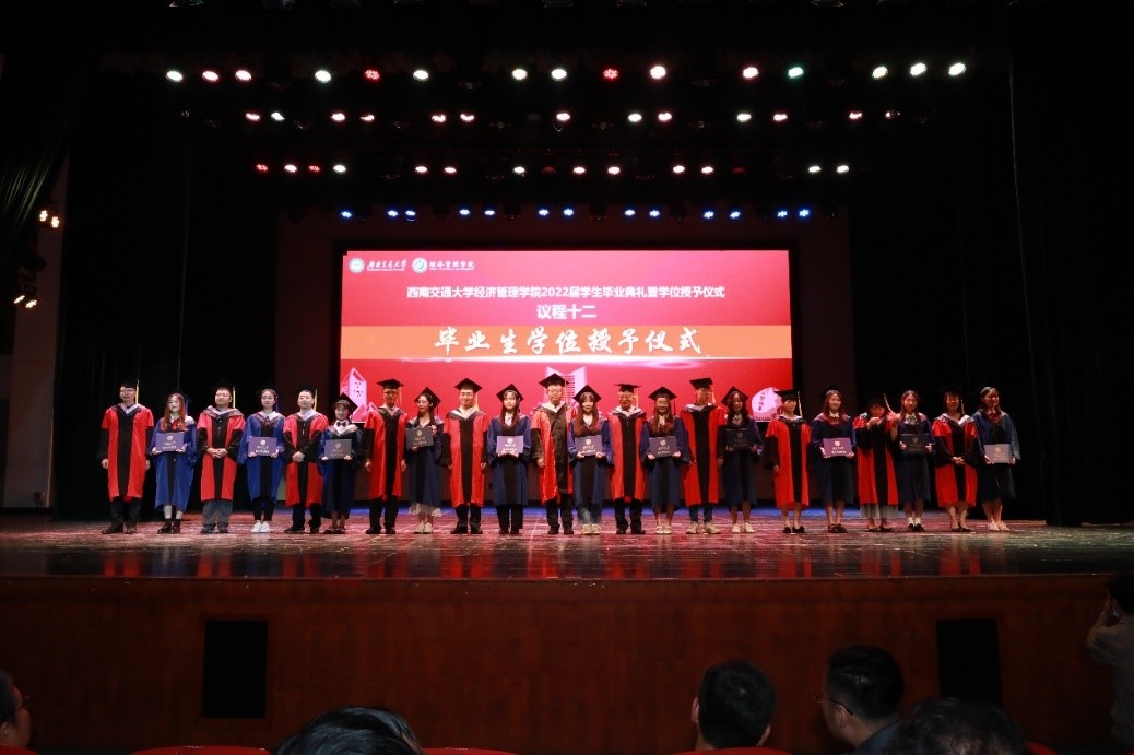 2022届学生毕业典礼暨学位授予仪式在九里校区大学生会堂隆重举行。毕业典礼共有14项议程,以奏唱国歌开始,以奏唱校歌结束。各位领导、校友在典礼中亲切致辞,表达了对毕业生的祝福和对未来的期盼,毕业生代表发表感言,回顾求学历程,言语中包含对学校及老师的拳拳感恩之情。