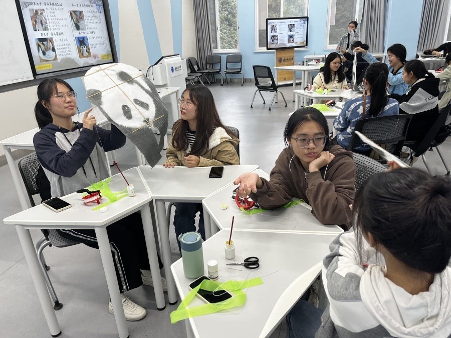 九里校区J4204举行四川王泗风筝制作体验课。
