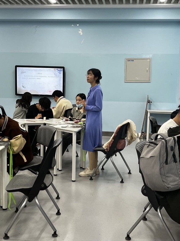 接下来由陈沅讲授风筝的制作步骤、制作要点以及技巧,带领同学一步一步完成风筝的制作。同学们在工作人员的指导下开始了热火朝天的制作环节。