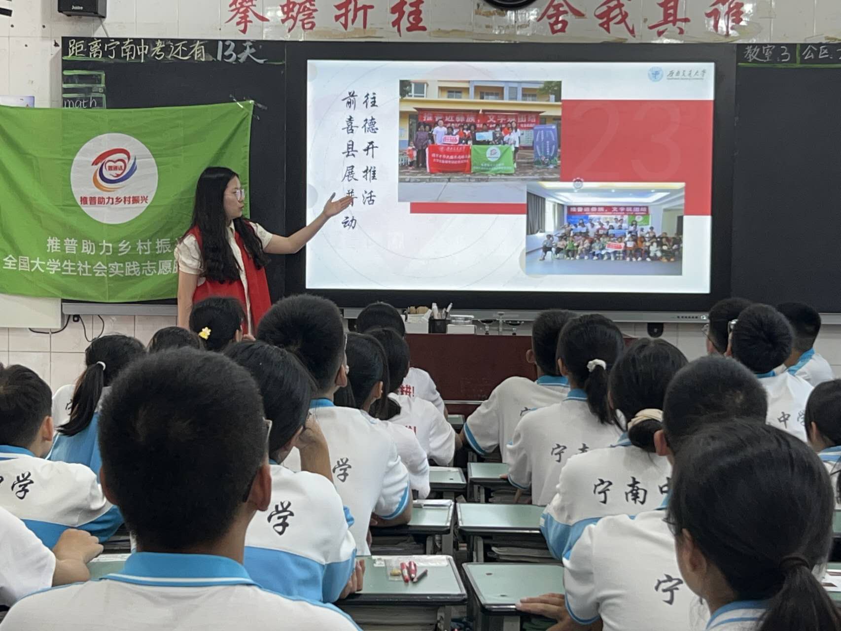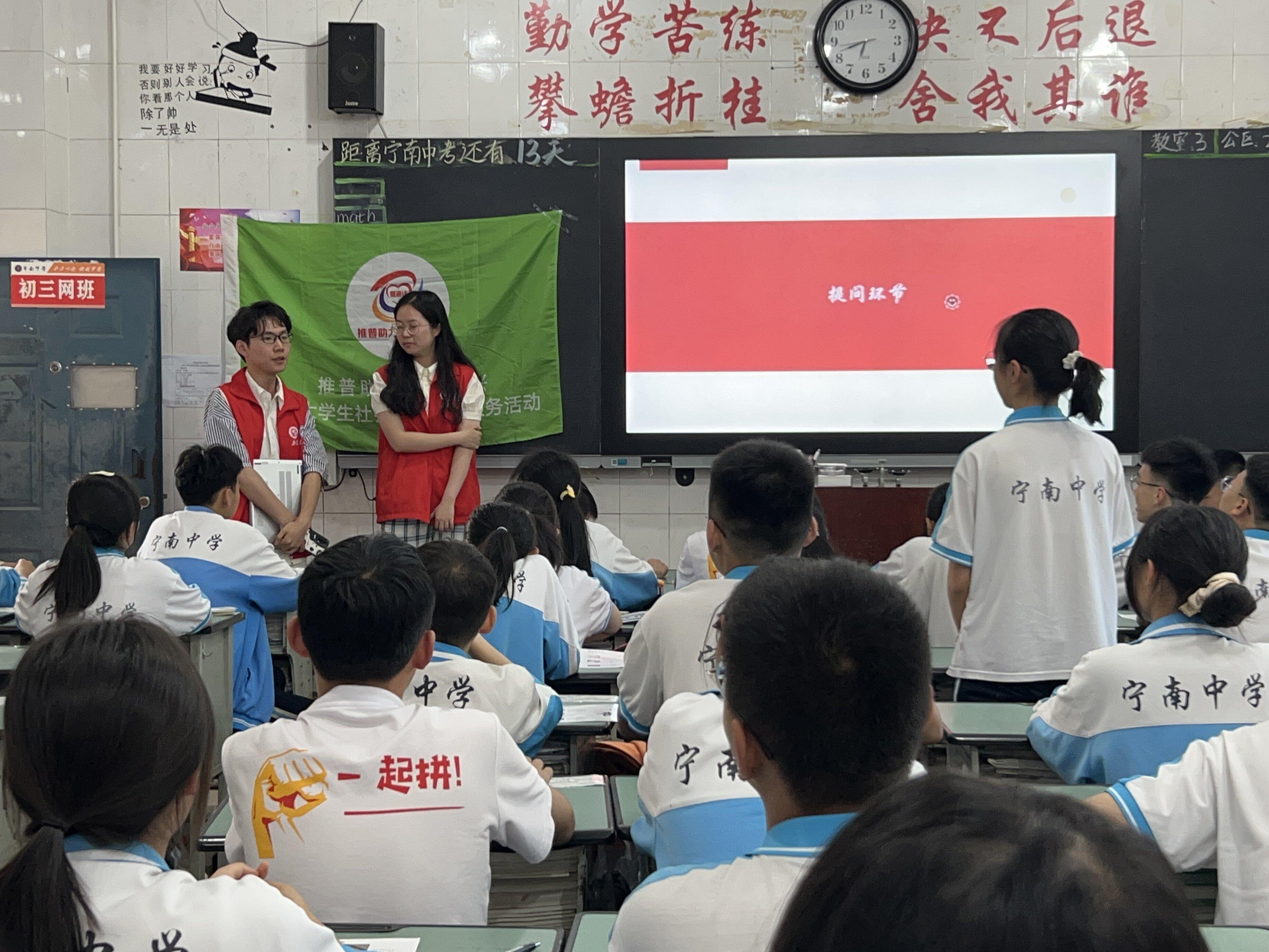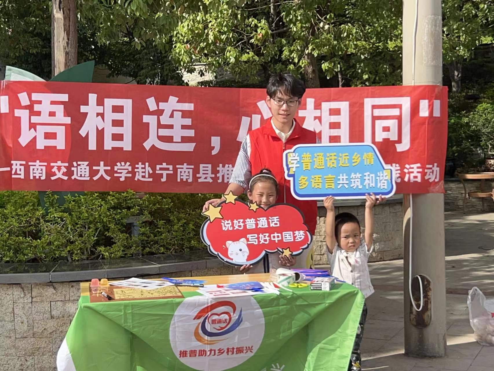 “语相连,心相同——推普助力乡村振兴“实践团队来到了宁南县,在这里开展了普通话推广及相关调研活动,为西部少数民族语言文字教育助力。在此次实践中,团队通过街头调研,定点摊位,课堂教育,走访宣传等形式,了解当地普通话使用情况,普及民族共同语言,助力乡村振兴。