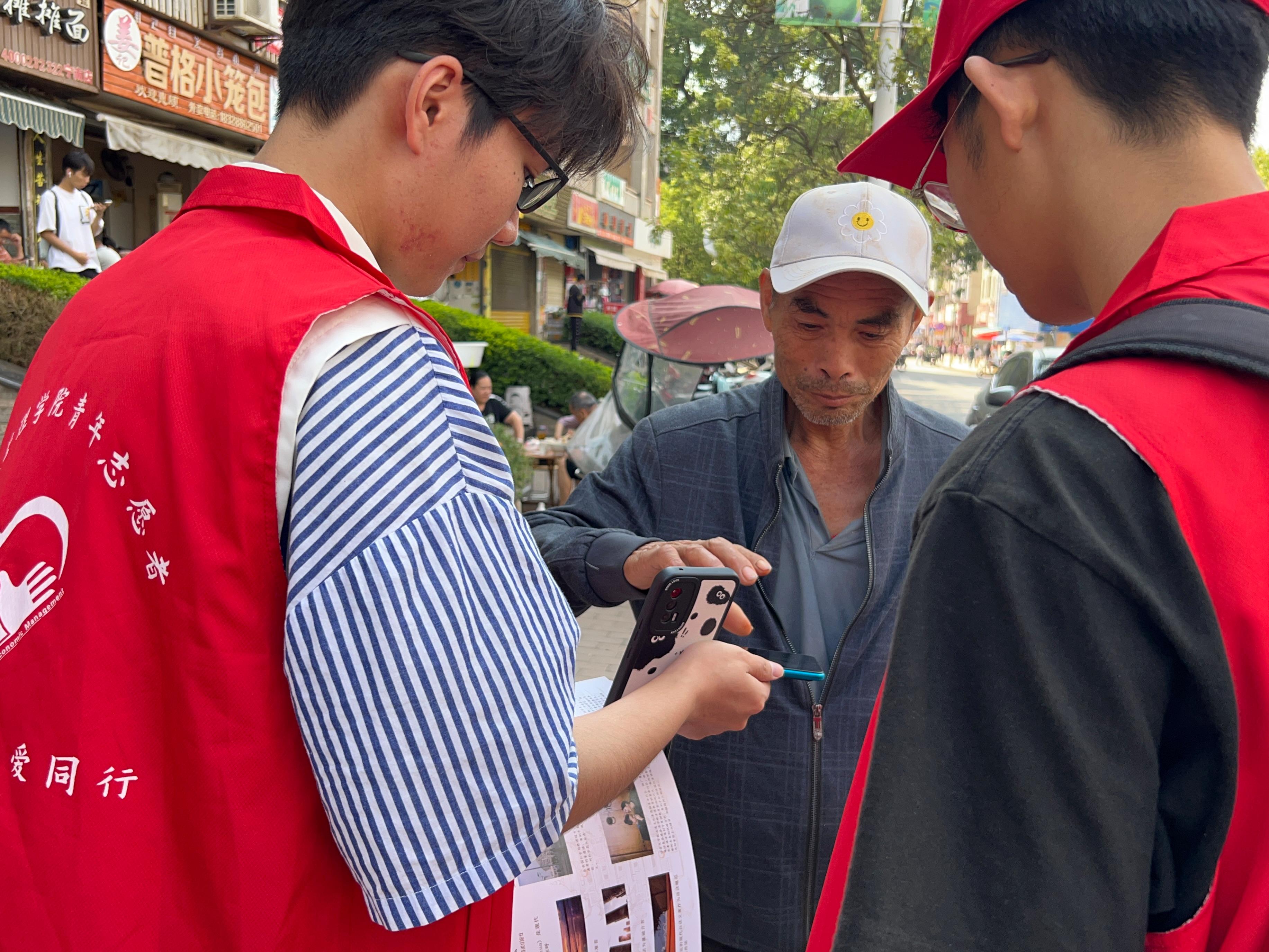 活动第一天,团队成员深入宁南县街头巷尾,以发放调查问卷,街头随机采访等形式,收集并了解了当地居民的普通话使用习惯,使用频率,使用场景等,并询问了他们对于普通话学习的意愿以及对推广普通话活动的看法。