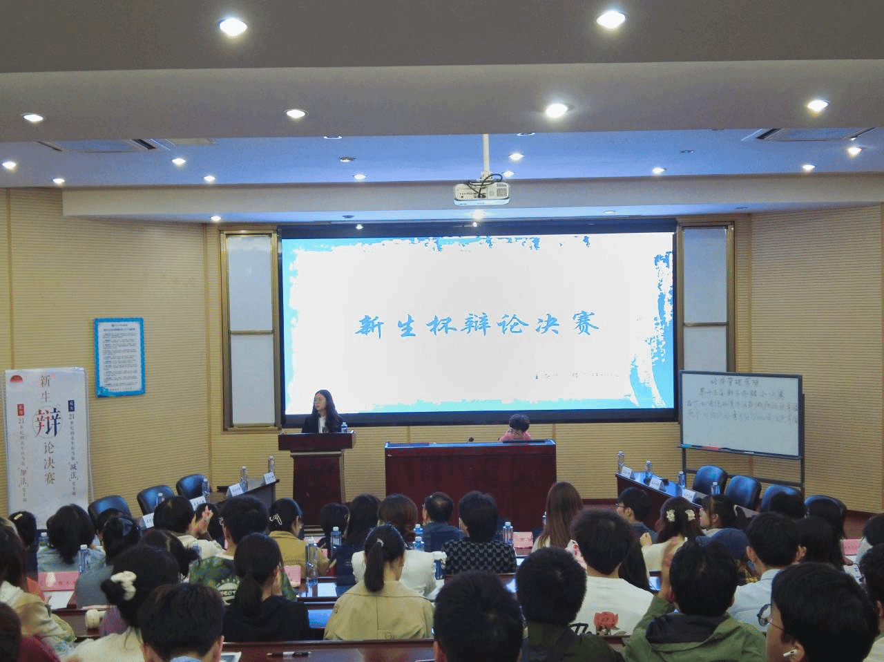本次比赛的辩题为“21世纪的青年做加法还是做减法更幸福”,参加决赛的队伍分别是正方:管理九班代表队,反方:经贸二班代表队。决赛正式开始前,杨宏毅进行致辞,强调辩论对思维深度、知识广度的影响,并对两支决赛队伍寄语。