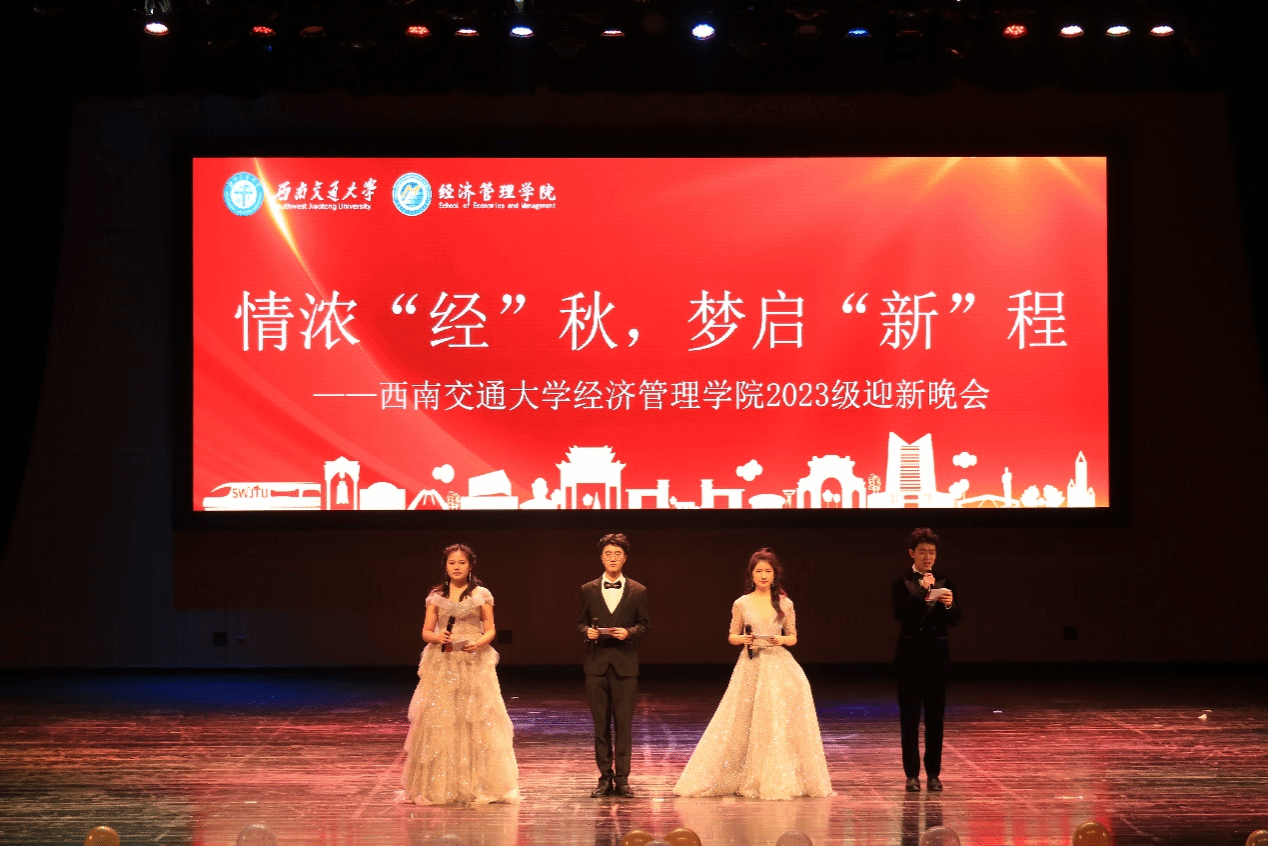 2023级迎新晚会在九里校区大学生会堂圆满落幕。本次晚会以“情浓‘经’秋 ,梦起‘新’程”为主题,全院新生积极展示自我,尽显风采。出席本次晚会的嘉宾有包子漫画