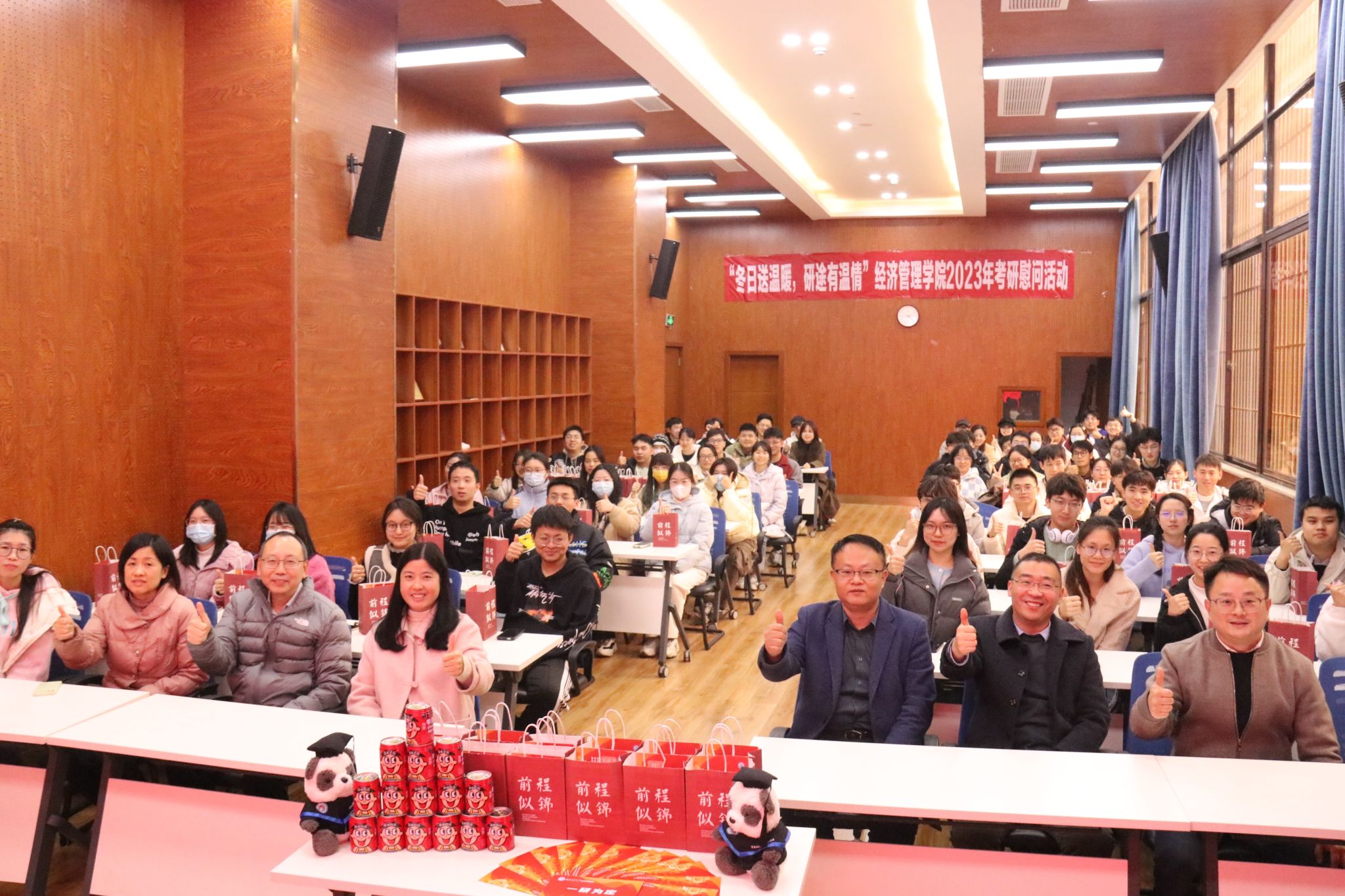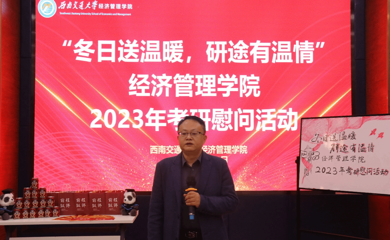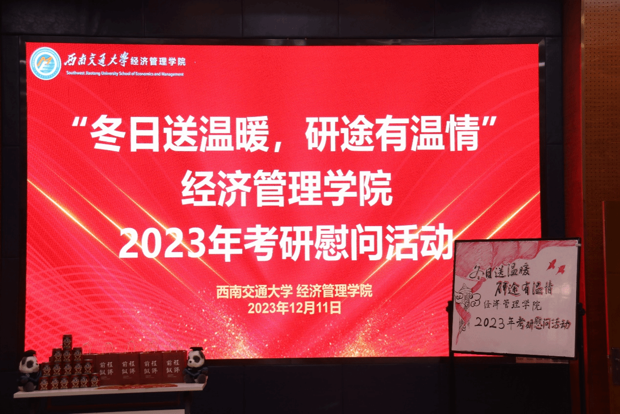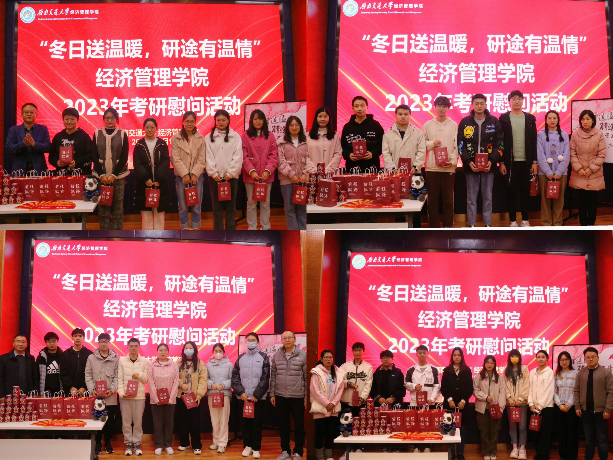 在J0218教室举行“冬日送温暖,研途有温情”2023年考研慰问活动,该活动旨在为本院2020级考研学子在紧张的备考学习中送去关怀与温暖,在最后的考研冲刺中为同学们加油鼓劲,鼓励大家调整好心态,以积极的精神面貌迎接即将到来的考试。