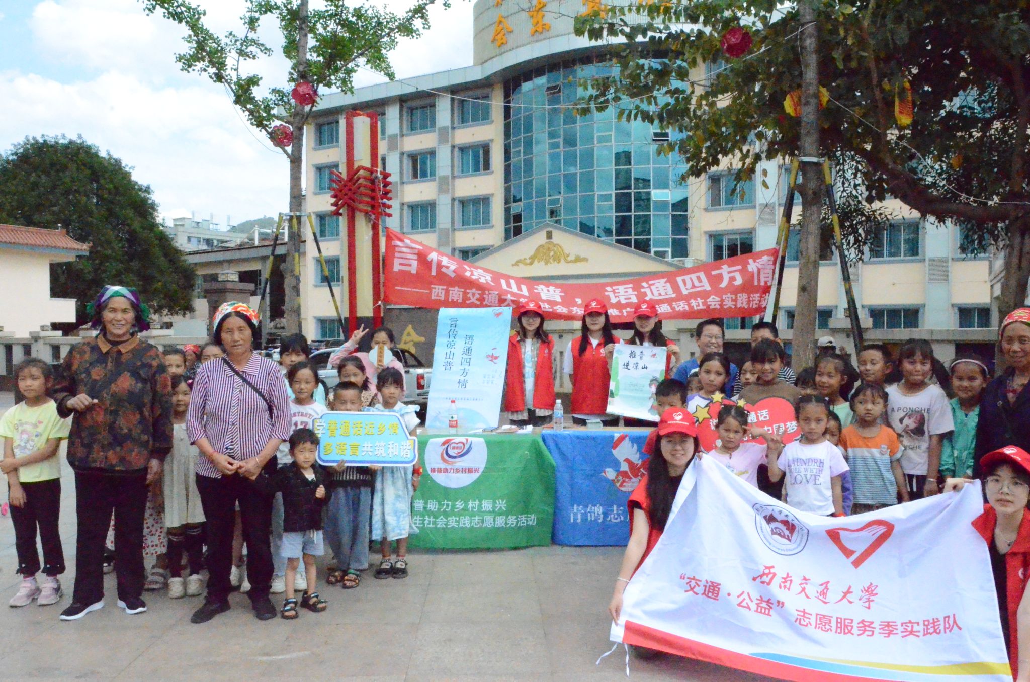青鸽志愿服务队一行深入四川省凉山彝族自治州会东县,开展“言传凉山普,语通四方情——推普助力乡村振兴”社会实践活动。在此次实践中,团队通过街头调研,定点摊位,课堂教育,走访宣传等形式,开展普通话调研和推广活动,普及民族共同语言,促进中华优秀语言文化传承和发扬,为赓续中华文明倾注青年力量,以青春之行助力乡村振兴。
