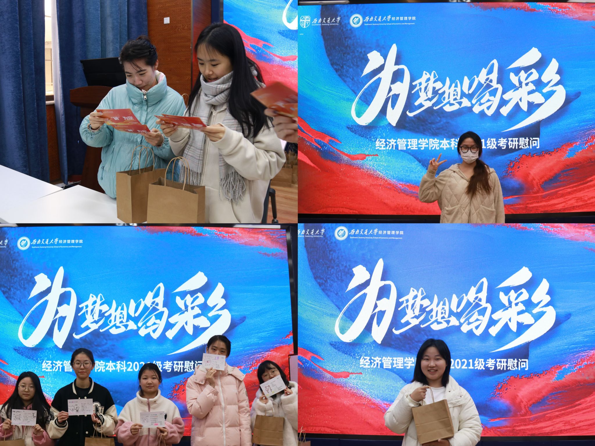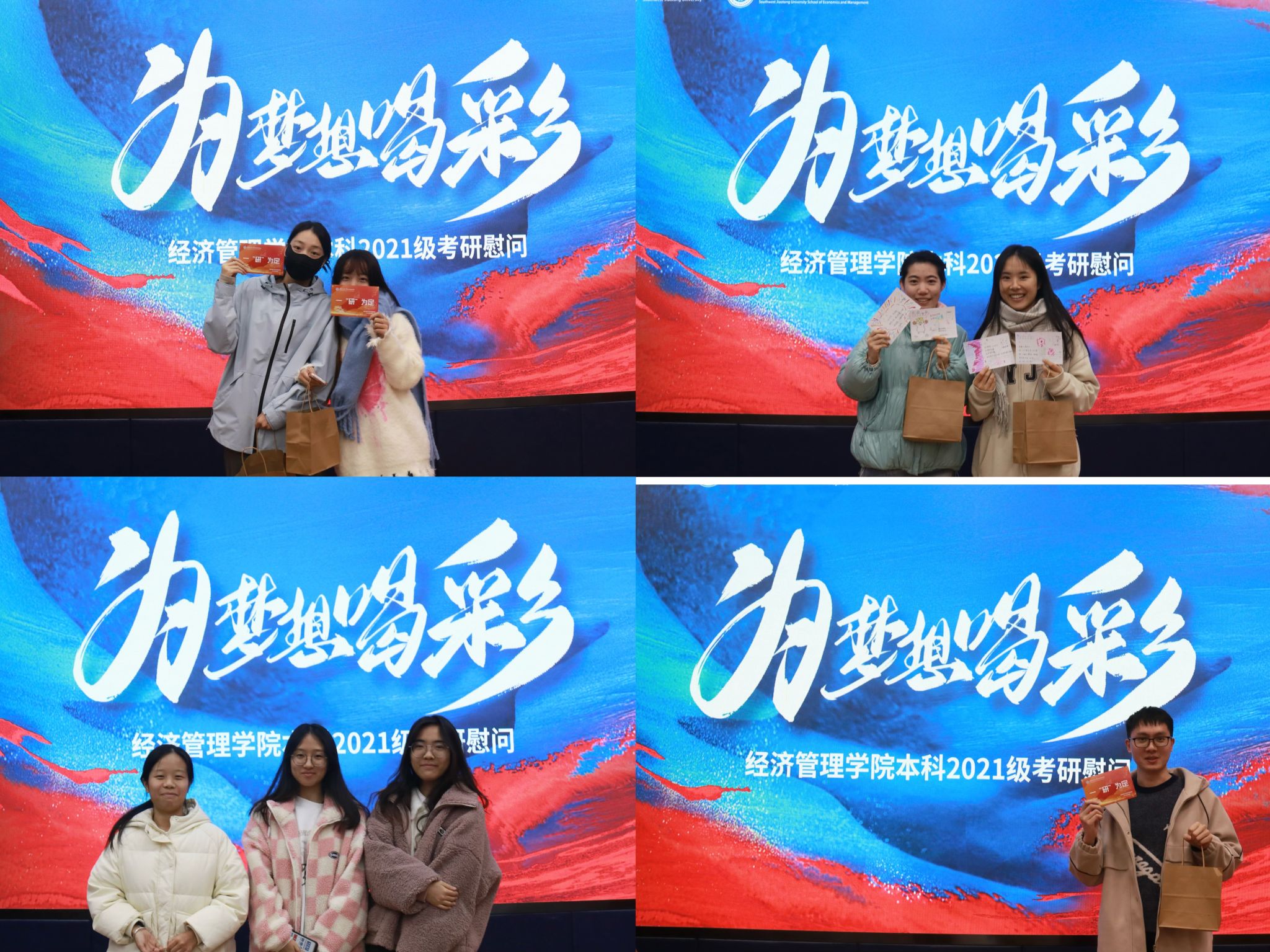 此次“为梦想喝彩”考研慰问活动,不仅为备考学生送去了实质性的帮助,更在精神上给予了他们极大的鼓舞,彰显了学院以学生为中心的教育理念,营造了积极向上的学习氛围,为即将踏上考研征途的学子们注入了强大的动力。相信在不久的将来,这些怀揣梦想的学子们都能一“研“为定,未来可期。
