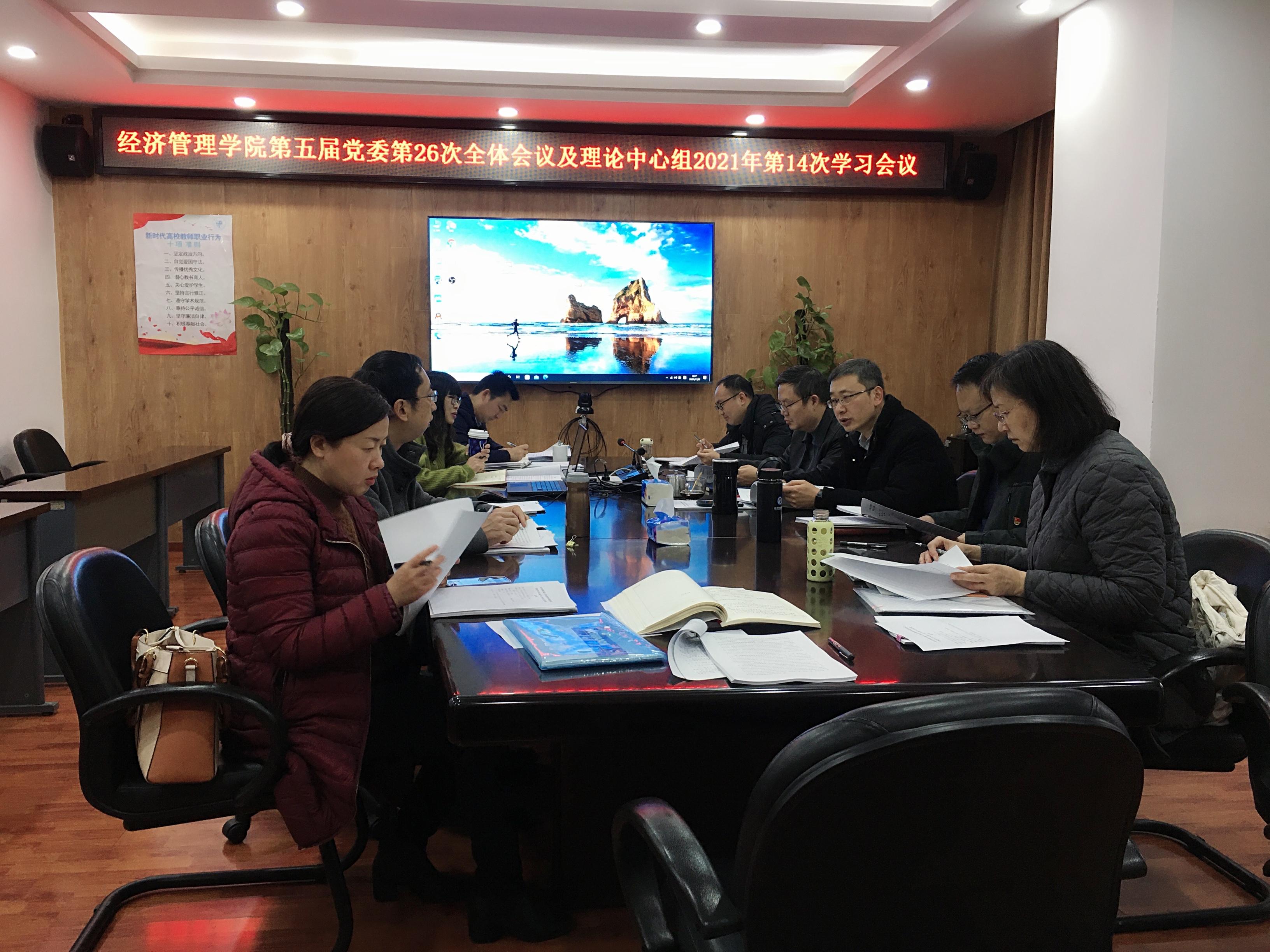 第五届党委在九里校区零号楼0607会议室召开了第26次全体会议,并进行了2021年第14次理论学习中心组学习。会议和学习由学院党委书记王斌主持,学校党委组织部陈燕灵老师列席了会议。
