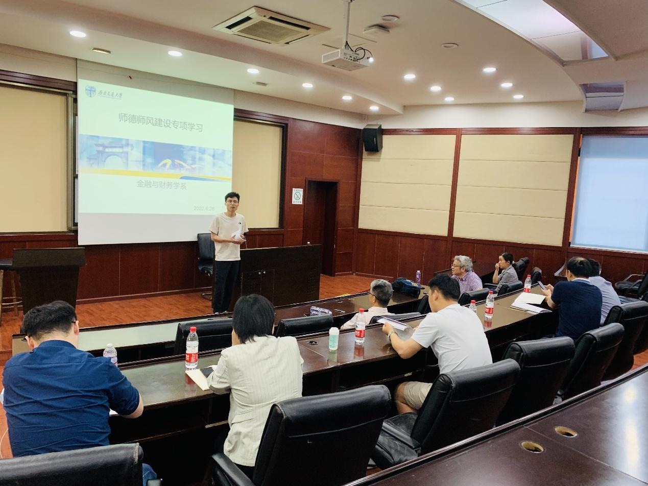 2022年4月28日下午,学院金融与财务学系党支部在0224室开展师德师风建设应知应会专项学习活动。本次学习由党支部书记马锋主持,全系全体教师参加了学习。