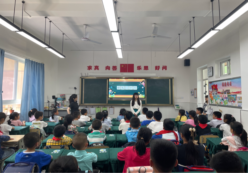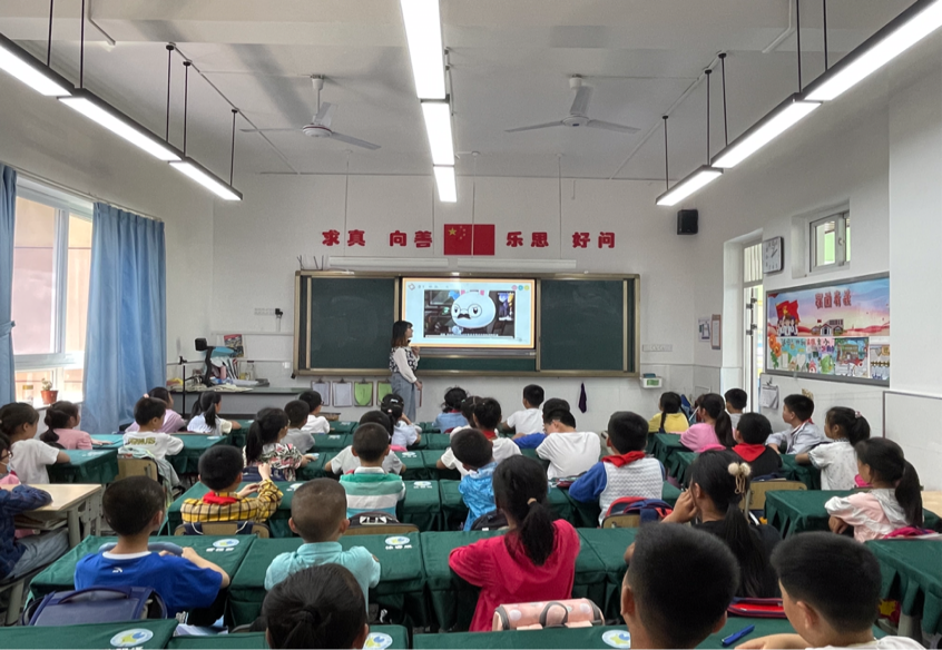 随后,龙柳江同志讲述了党史故事。内容从“中共一大”开始到即将召开的二十大,着重对“中共一大”、“十一届三中全会”、“十九大”和“二十大”展开了讲述,通过动画的形式生动有趣的向“红领巾”们介绍了党代会的历史知识。中共一大的召开宣告了中国共产党的正式成立,犹如一轮红日在东方冉冉升起,照亮了中国革命的前程。十一届三中全会是新中国成立以来在党的历史上具有深远意义的伟大转折,提出了改革开放的政策,从此中国开始飞速发展。当观看到2010年中国GDP排名攀升至全球第二,超过日本时,小学生们的民族自豪感瞬间被点燃,全场爆发出热烈的掌声。从十九大到二十大,是“两个一百年”奋斗目标的历史交汇期,意义重大而深远。