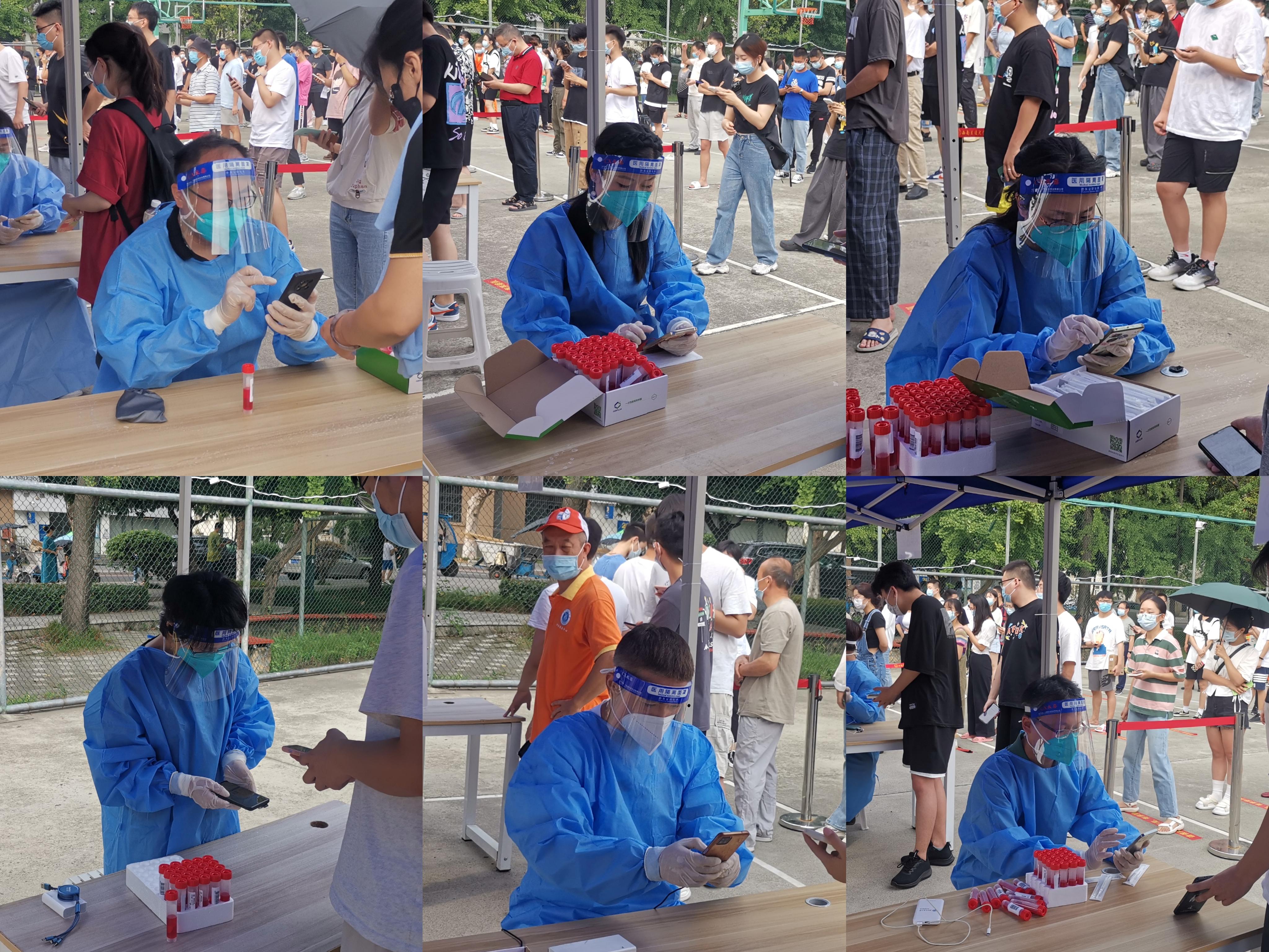 一个党员就是一面旗帜。学院党员志愿者老师们主动“戴党员徽章、亮身份、当先锋、作表率”,迅速投身到疫情防控一线。他们耐心细致地开展核酸检测扫码、粘贴试管码、准备检测物品、维持核酸检测秩序等工作,大家在工作中分工明确、认真负责,从下午4:00持续到晚上10:00,各项工作有条不紊进行。党员为先锋、群众为主力的坚强战“疫”堡垒作用彰显,在九里校区形成了联防联控的强大合力。