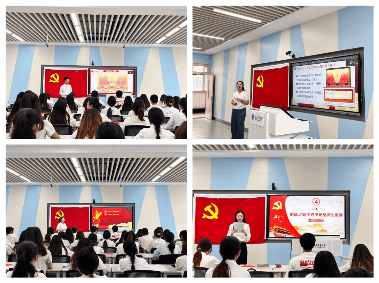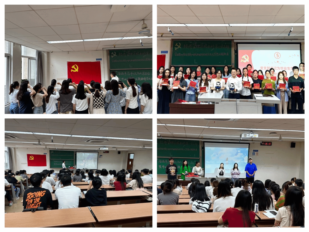 本科第二党支部开展学习贯彻习近平新时代中国特色社会主义思想主题教育——“习近平总书记与大学生在一起”暨毕业生党员主题教育党日活动。首先,毕业生党员领学分享习近平总书记给大学生的重要回信和习近平总书记到各大学视察时的重要讲话精神;然后,大家集体观看党支部成员为毕业生党员录制的视频;紧接着,党支部全体成员为2019级毕业生献歌;随后,毕业生党员重温入党誓词;最后党支部为毕业生党员颁发入党生日贺卡。通过主题党日活动积极教育引导党员深刻领悟“两个确立”的决定性意义,不断增强“四个意识”、坚定“四个自信”、做到“两个维护”,树立远大理想,担当时代责任。