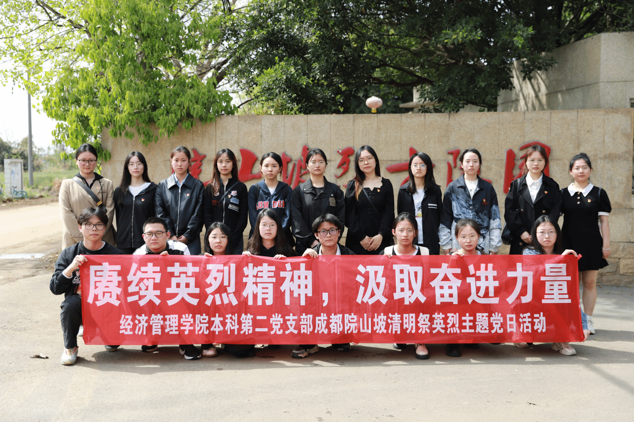 本科第二党支部组织党员和入党积极分子前往成都市院山坡烈士陵园开展“赓续英烈精神,汲取奋进力量”清明祭英烈主题党日活动。