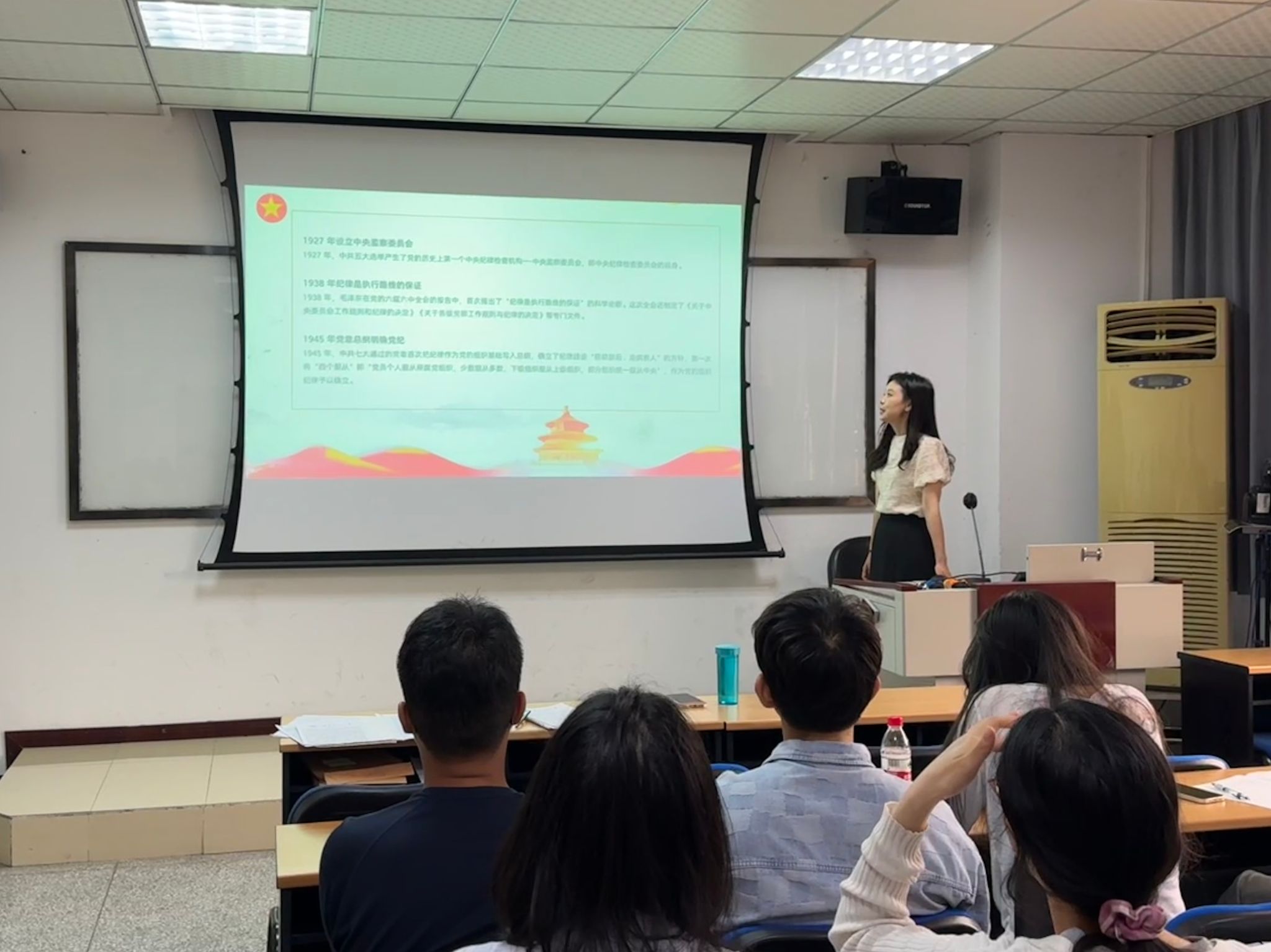 本科第四党支部在J0304教室开展支部书记讲党课。支部书记张先凌从党史回顾党纪建设,通过党的建立和发展光辉历程中关于党的纪律建设相关内容,强调了纪律严明是党的优良传统和政治优势,号召支部全体同志严守党纪,不忘初心,牢记使命。