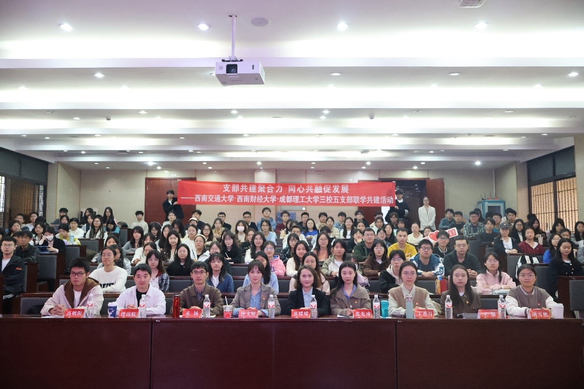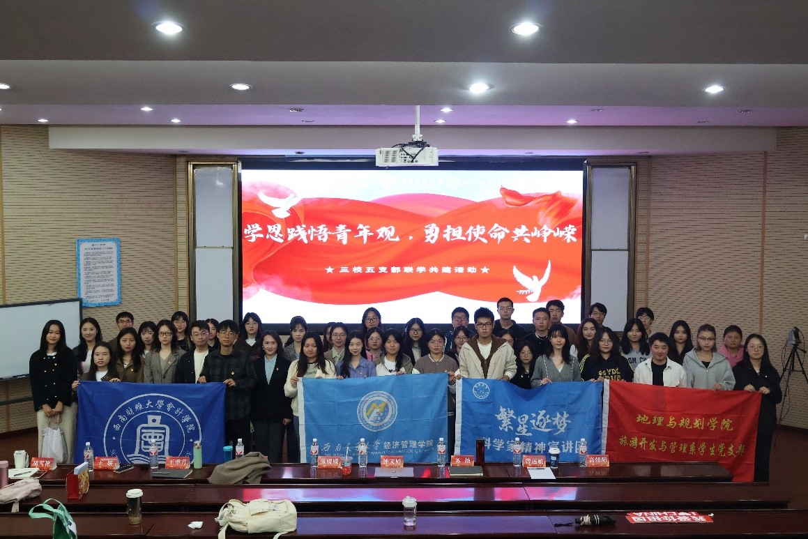 本科第三、第四党支部、西南财经大学会计学院硕士研究生2024级第三党支部和成都理工大学地理与规划学院旅游开发与管理系学生党支部于九里校区0202报告厅开展了“学思践悟青年观,勇担使命共峥嵘——三校五支部联学共建活动”,聚焦理论联学和经验分享,推动青年党员交流互鉴,促进支部建设深度融合。