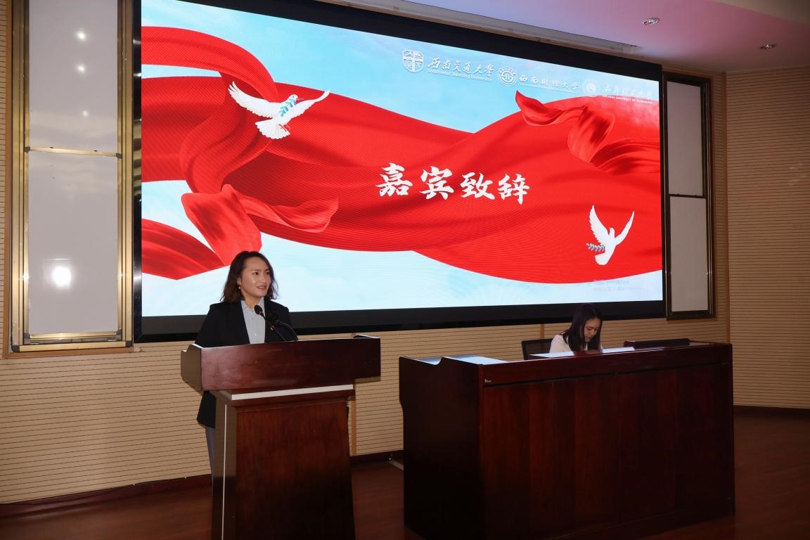 接下来,西南财经大学会计学院硕士研究生2024级第三党支部书记王娇以西财百年精神“经世济民,孜孜以求”为主线,向大家介绍了西南财经大学的基本情况,展现了学校师生胸怀国计民生、刻苦钻研、探索真理、勇于实践、艰苦创业的理想追求。