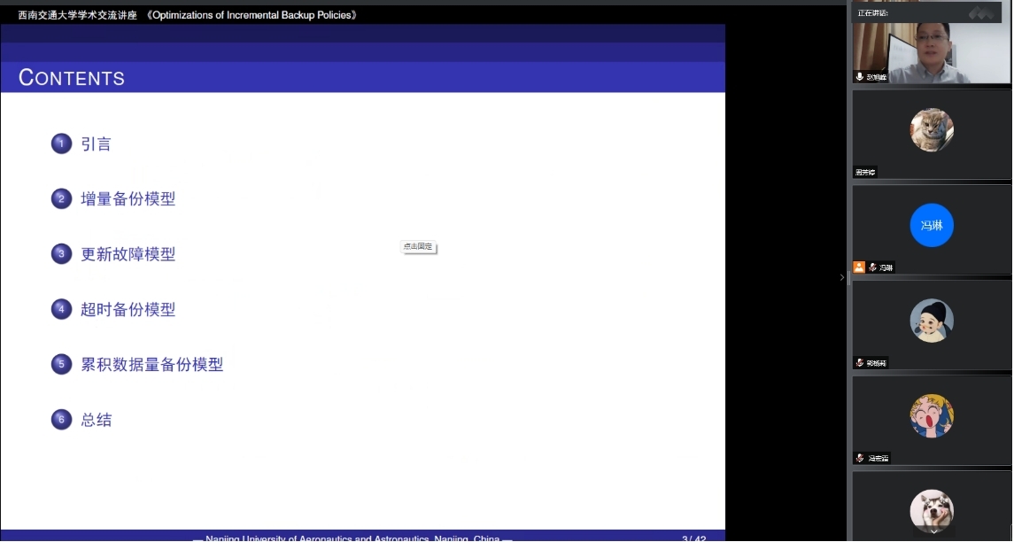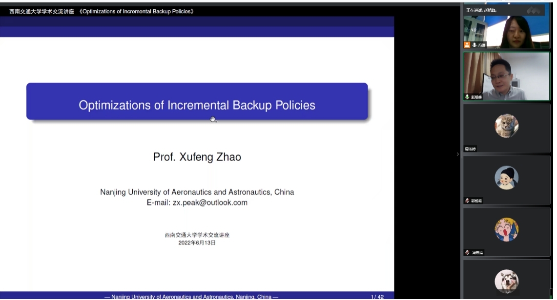 2022年6月13日下午16:00,南京航空航天大学经济与管理学院赵旭峰教授,应邀以”Optimizations of Incremental Backup Policies”为题为包子漫画