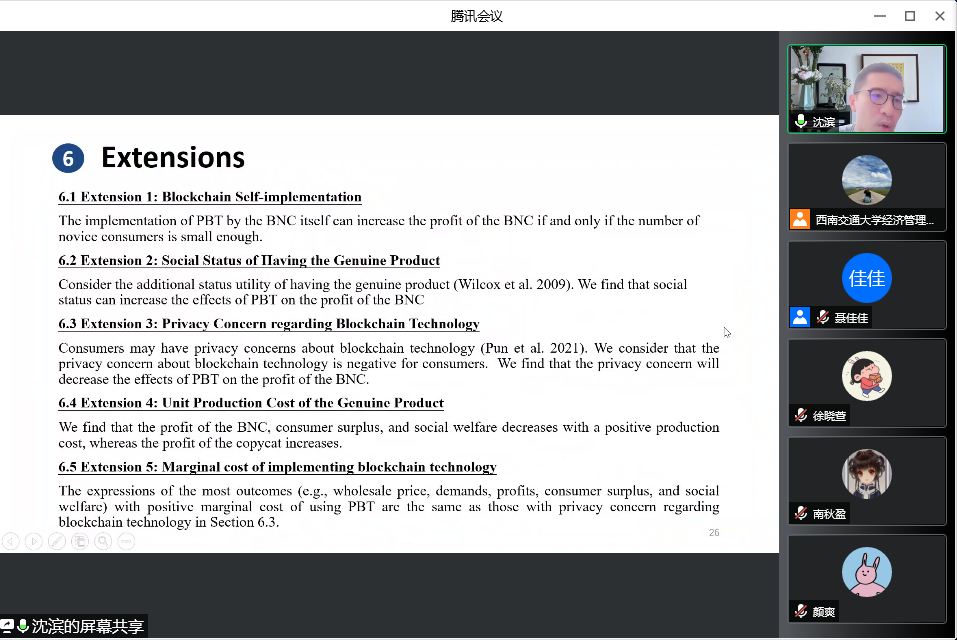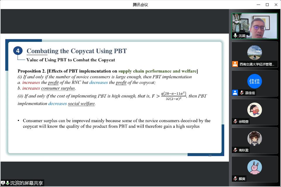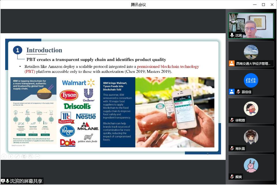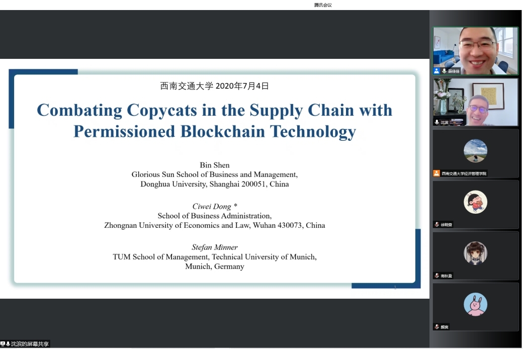 开展题为“Combating Copycats in the Supply Chain with Permissioned Blockchain Technology”线上讲座。本次讲座由副院长聂佳佳教授主持,学院部分博士生和硕士生参加了本次讲座。