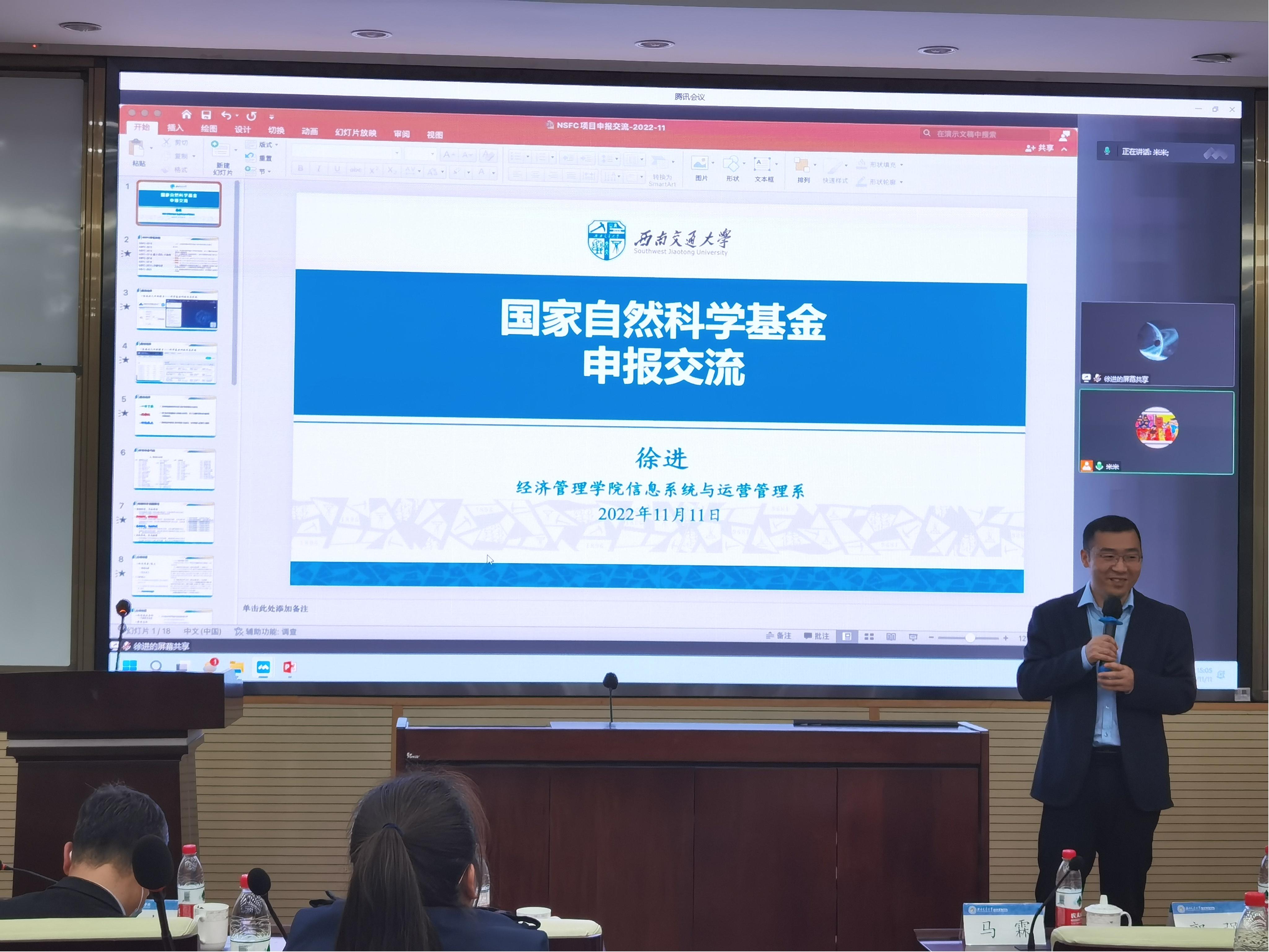 徐进老师结合自己在科研项目申报方面的工作经验,分享了在国家自然科学基金申报中如何选题、如何选择代码、明确科学问题属性、立项依据、研究基础与工作条件等五个方面的心得。徐进老师强调,自然科学基金项目申报最重要的是确定选题,如何让专家一目了然了解申报书研究的主旨是什么,如何撰写立项依据,如何引用清晰的图表表述全文的逻辑结构,需要老师们精雕玉琢。