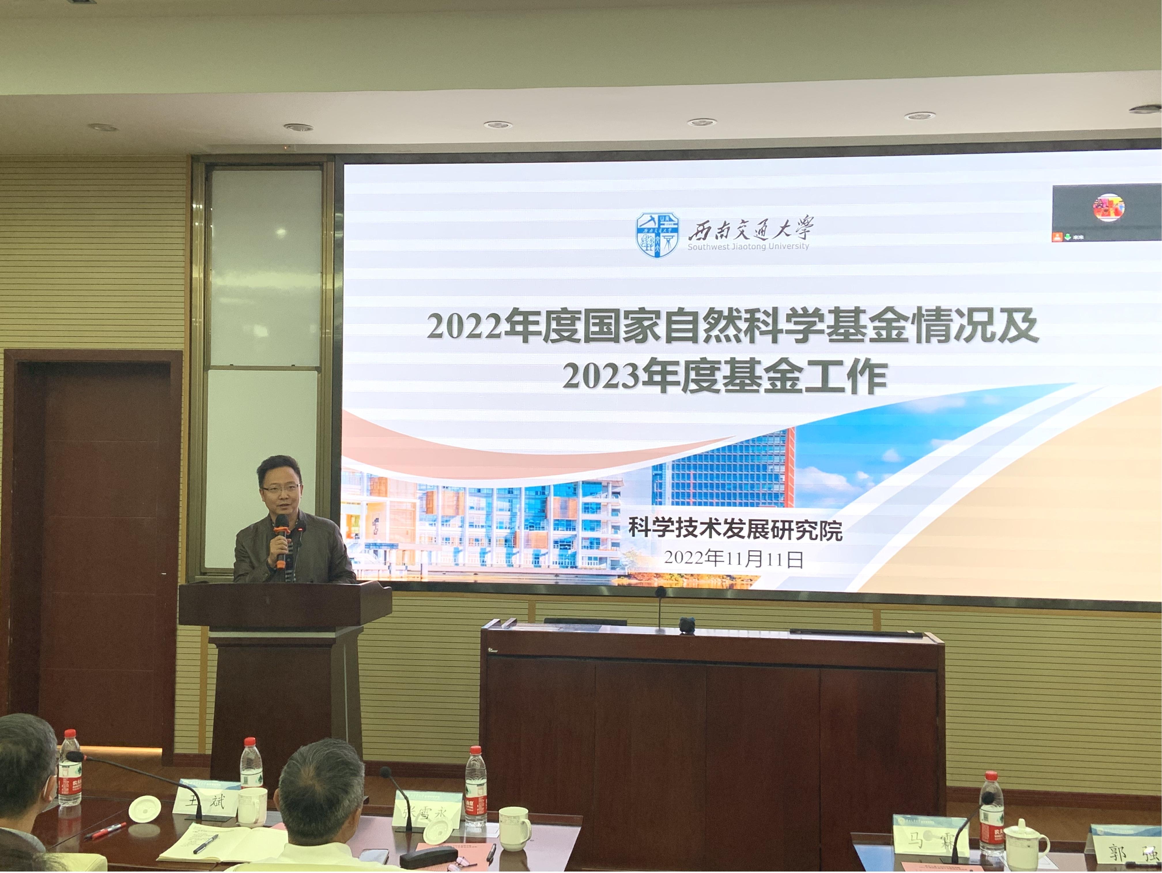 近期,学院组织开展一系列科研活动助力老师们申请申报各类科研项目。2023年度国家级科研项目申报动员会2022年11月11日下午在九里校区0212室举行,学院特邀请文科建设处处长张雪永、科学技术研究院副院长马霖出席。动员会由学院副院长聂佳佳主持,学院党委书记王斌、执行院长郭强等全院40余名老师参加。