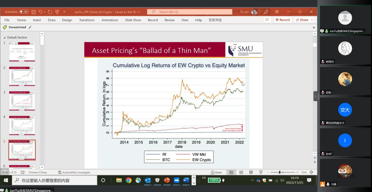 分享结束后,凃俊副教授针对师生的提问进行了一一解答,共同探讨了目前的学术研究热点和可行的研究方法。本次学术讲座拓宽了大家的思路,加深了大家对于资产定价以及加密货币市场的认识和理解,拓宽了学术视野,有助于今后的学术研究。