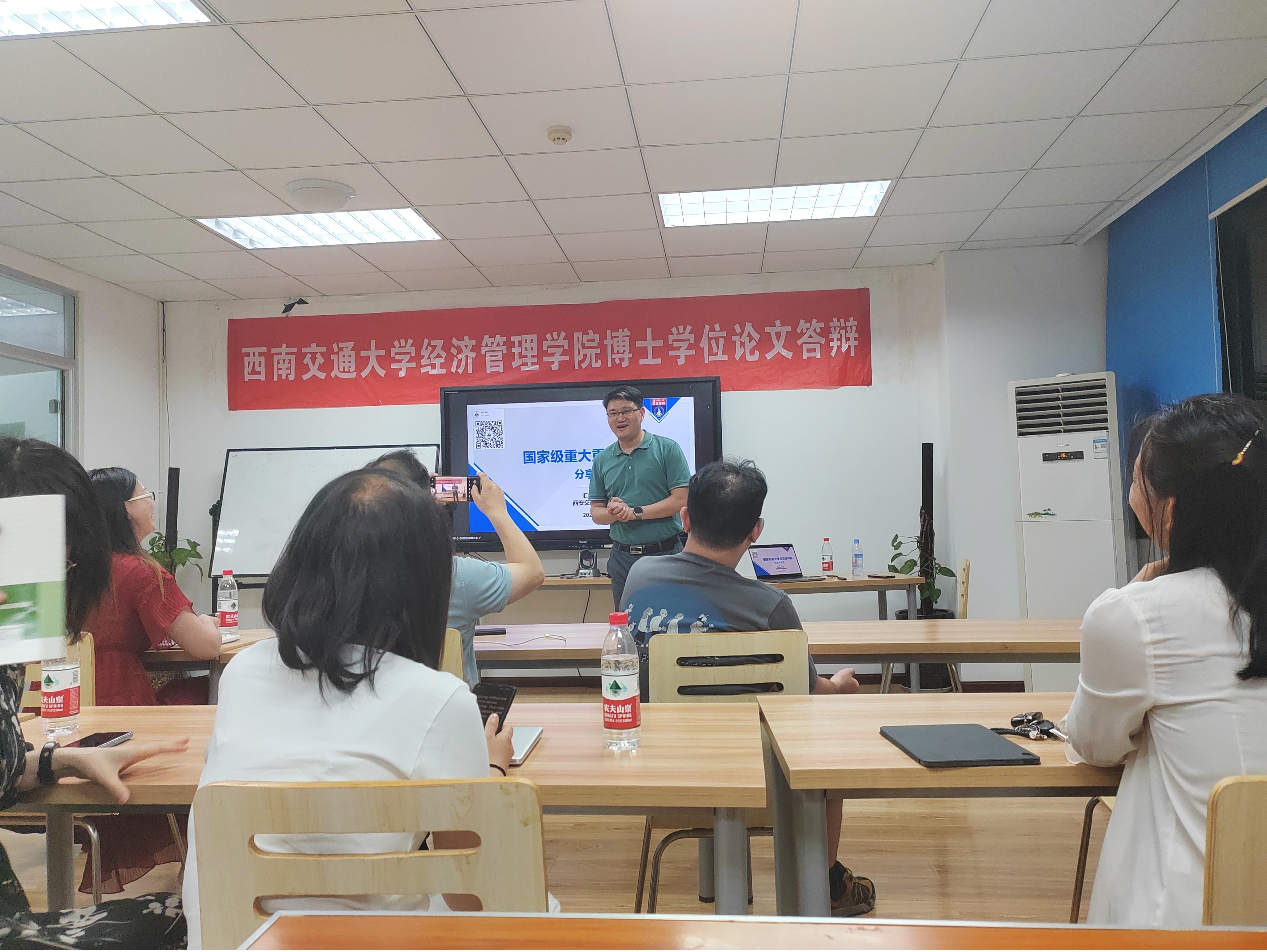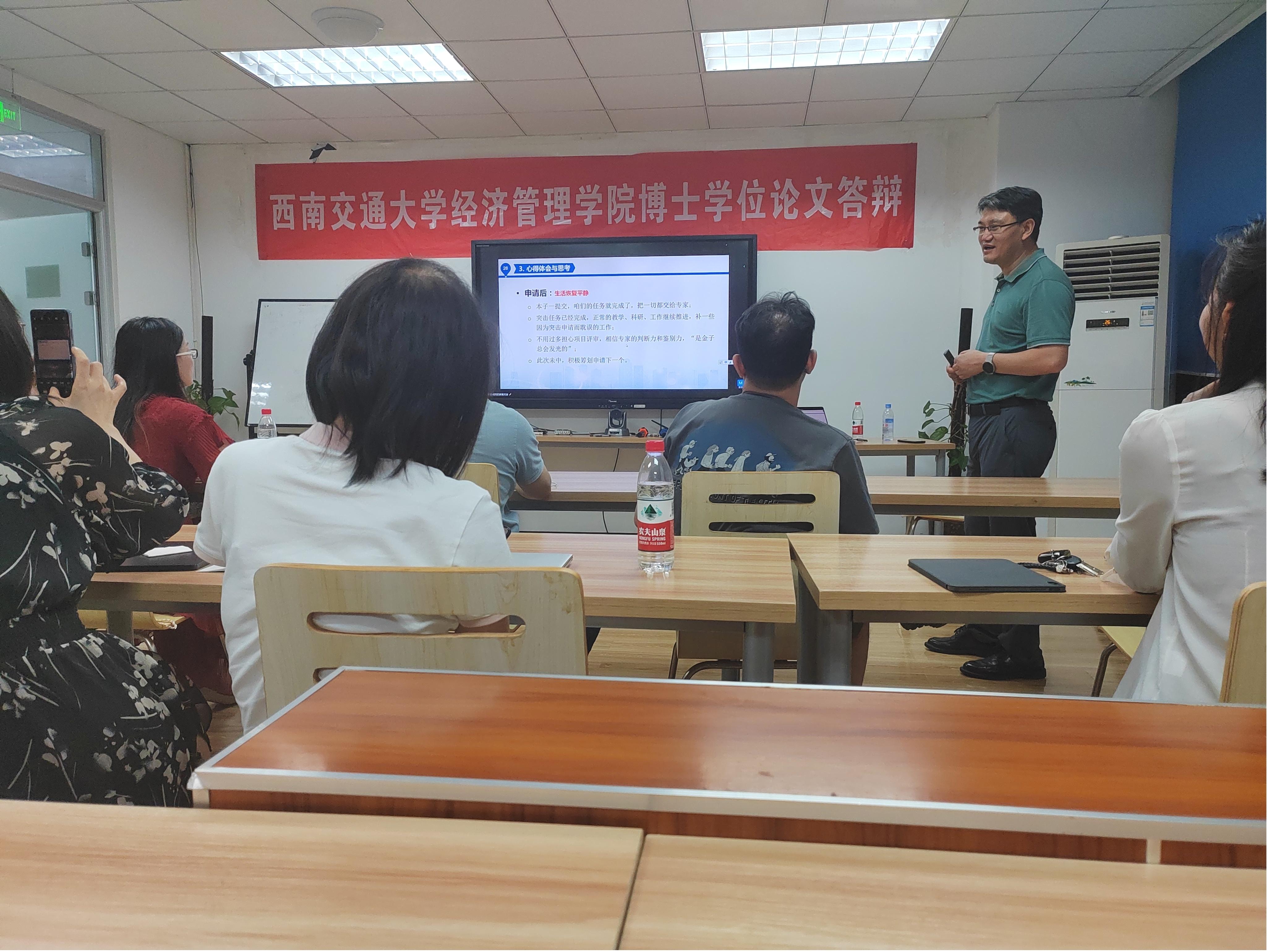师生进行“国家级重点重大项目申报分享”,本次学术活动由学院市场学系蒋玉石教授主持,学院部分老师、同学参与了此次学术活动,学院副院长聂佳佳教授致欢迎辞并对舒成利教授进行了隆重介绍,对舒成利教授表示欢迎和感谢。